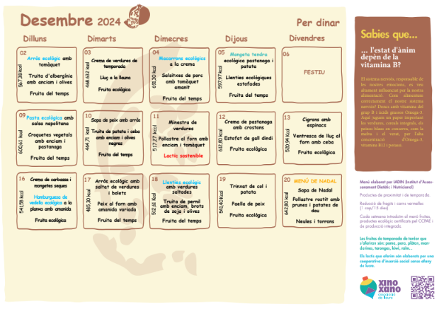 Menjador: menú del mes de desembre Llegeix més »
