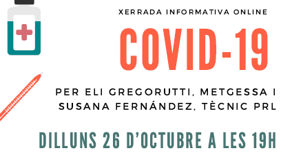 Dilluns vinent, 26 d’octubre a les 19h., us convidem a la xerrada “Covid: gestions i protocols de salut i a