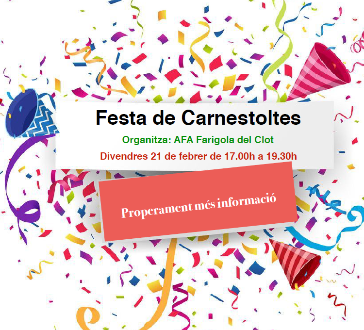 Preneu nota de la data per la Festa de Carnestoltes que organitza l’AFA de l’Escola Farigola del Clot: Divendres 21 […]