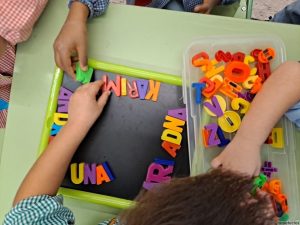 Consciència Fonològica (IV): Pissarres i lletres magnètiques Feu un comentari / I4 Infantil / Per admin Avui a Consciència Fonològica, la classe dels Insectes i la dels Arbres hem après a escriure el nom a partir dels sons, per mitjà de pissarretes i lletres magnètiques. Seguim!