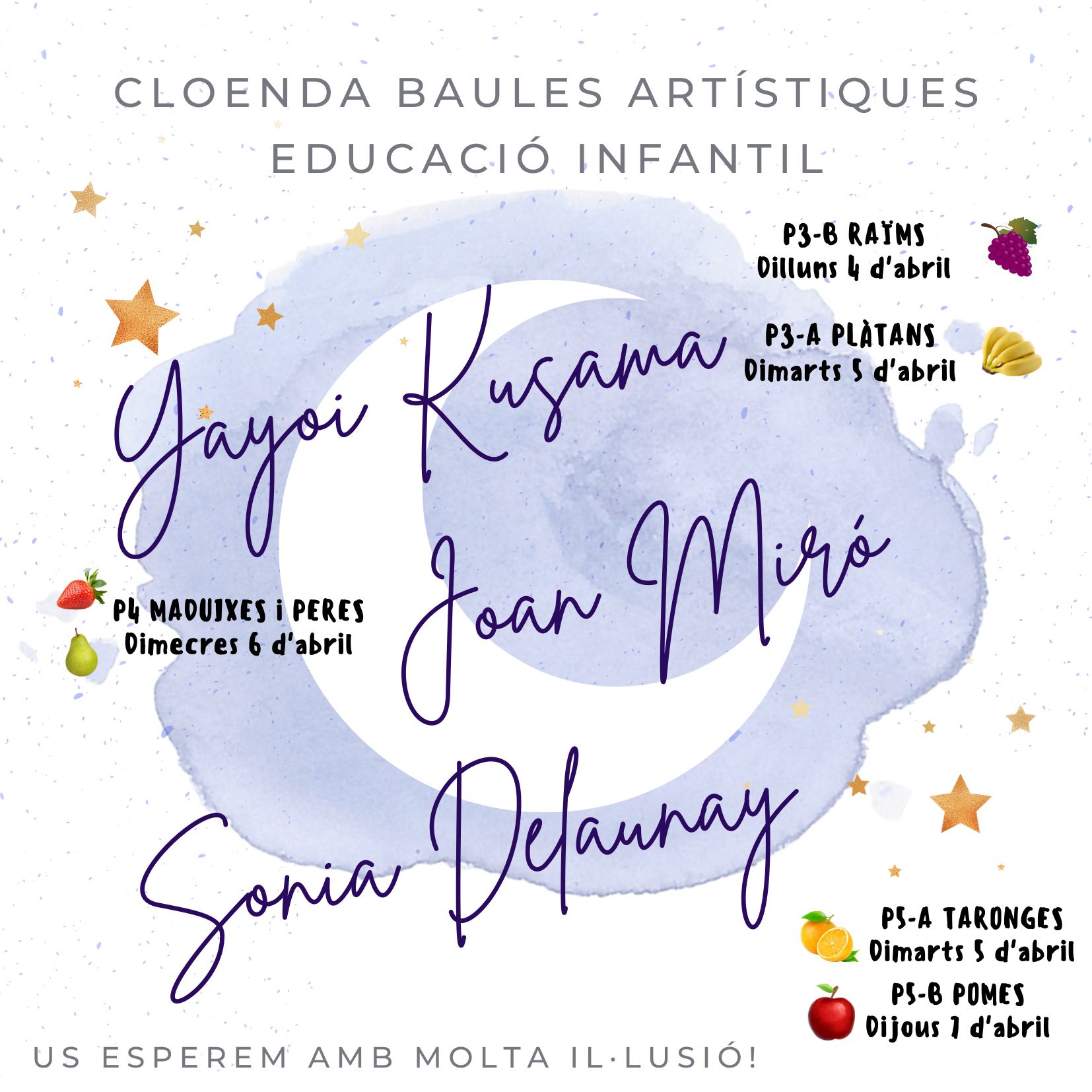 En aquestes activitats farem d’artistes, així que vingueu preparats i preparades, i amb moltes ganes de passar-ho bé!