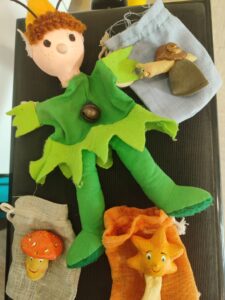 El Picarel·lo sempre porta una bosseta i fem la pregunta… Que porta l’esmorzar? Nooooo! Que porta la bata? Noooo.! Que porta l’agenda? Nooooo! Que porta cançons? SIIIIIIIII! I de dins de la bosseta ens surt un titella, un objecte, una imatge que fa referència a la cançó que aquell dia aprendrem de nou.
