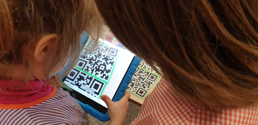 Amb els Ipads fem un joc més individual a partir de la pantalla d’inici dels jocs d’infantil. També fem un primer contacte amb la Realitat Augmentada a partir d’una app molt interessant: Quivervision i per últim amb diferents captures de codis QR hauran d’ordenar un conte.