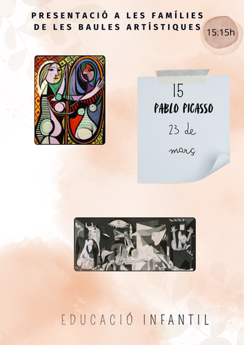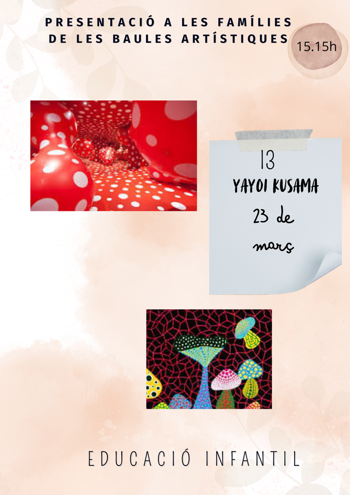 Us recordem que el pròxim dilluns, 23 de març, tindreu l’oportunitat de compartir amb nosaltres un moment molt especial: la presentació de les baules artístiques que els infants d’I3 i I5 han estat treballant, inspirant-se en els artistes Yayoi Kusama i Pablo Picasso.