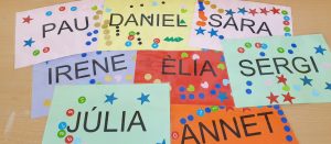 Cada dia treballem el nom a l’hora de passar llista, mirem els nens i nenes que es queden a dinar, els encarregats de la setmana… i poc a poc aniran descobrint el seu propi nom i el dels seus companys/es.