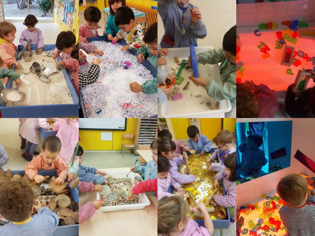 A les aules de P3 hem començat a jugar amb les safates sensorials.