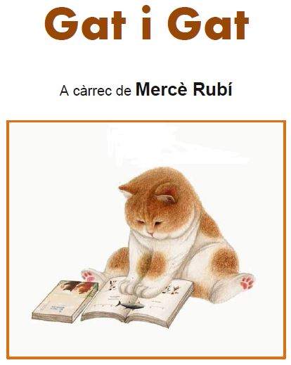 Dijous, 21 de febrer, a les 18 h… activitat adreçada a infants de més de 4 anys: Gat i gat, a càrrec de la Mercè Rubí, en la parla del Vallès Oriental. Entrada lliure, cabuda limitada.