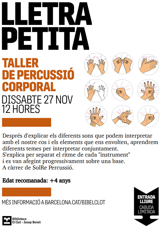 Activitat gratuïta a la Biblioteca El Clot – Josep Benet Feu un comentari / Informació Setmanal / Per admin Biblioteca El Clot-Josep Benet Plaça de les Glòries, 37-38. Tel. 933095199