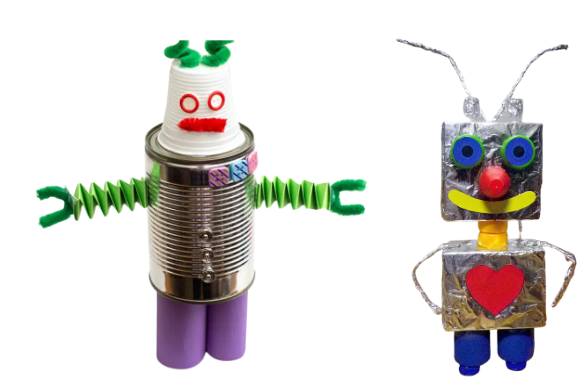 2n B: necessitem diferents materials reciclats per construir un robot de forma cooperativa, com per exemple: capses petites, llaunes de conserves grans, molles, caragols, rotllos de paper de vàter, rosques, xapes…