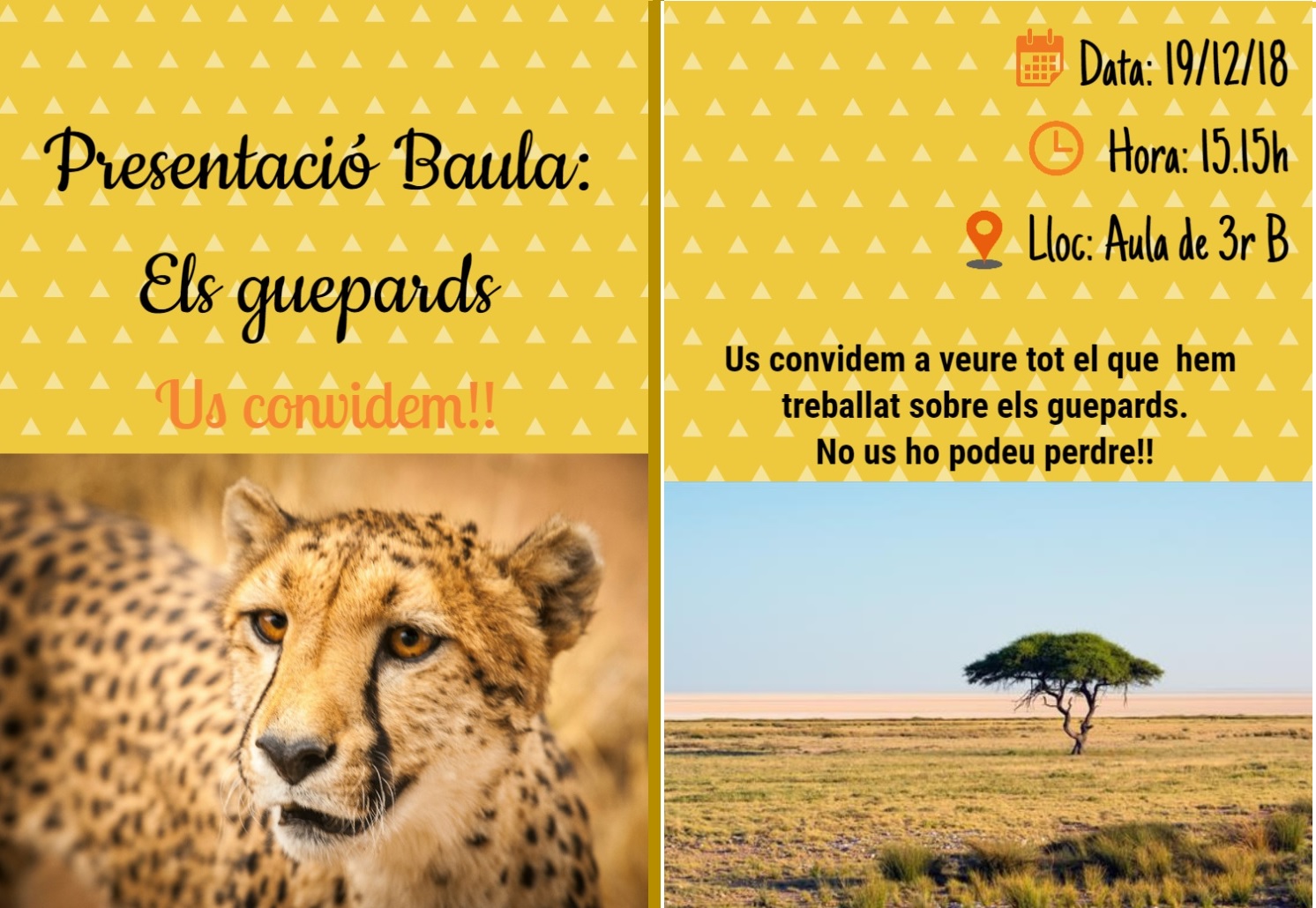 3r: famílies a classe Feu un comentari / 3r Informació Setmanal Portada / Per admin A 3r ja hem acabat les nostres baules del primer trimestre i volem convidar a les nostres famílies perquè vingueu a veure tot el que hem treballat sobre les nostres baules (animals i guepards). No us ho podeu perdre!