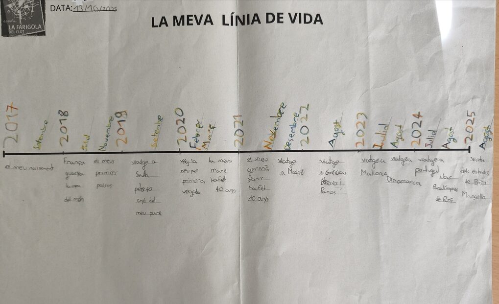 Aquesta activitat ens ha permès treballar l’eix cronològic i comprendre millor el pas del temps, alhora que l’hem connectada amb la recta numèrica treballada a matemàtiques. També hem practicat l’expressió oral, ja que cada infant ha pogut explicar la seva línia de vida al grup.
