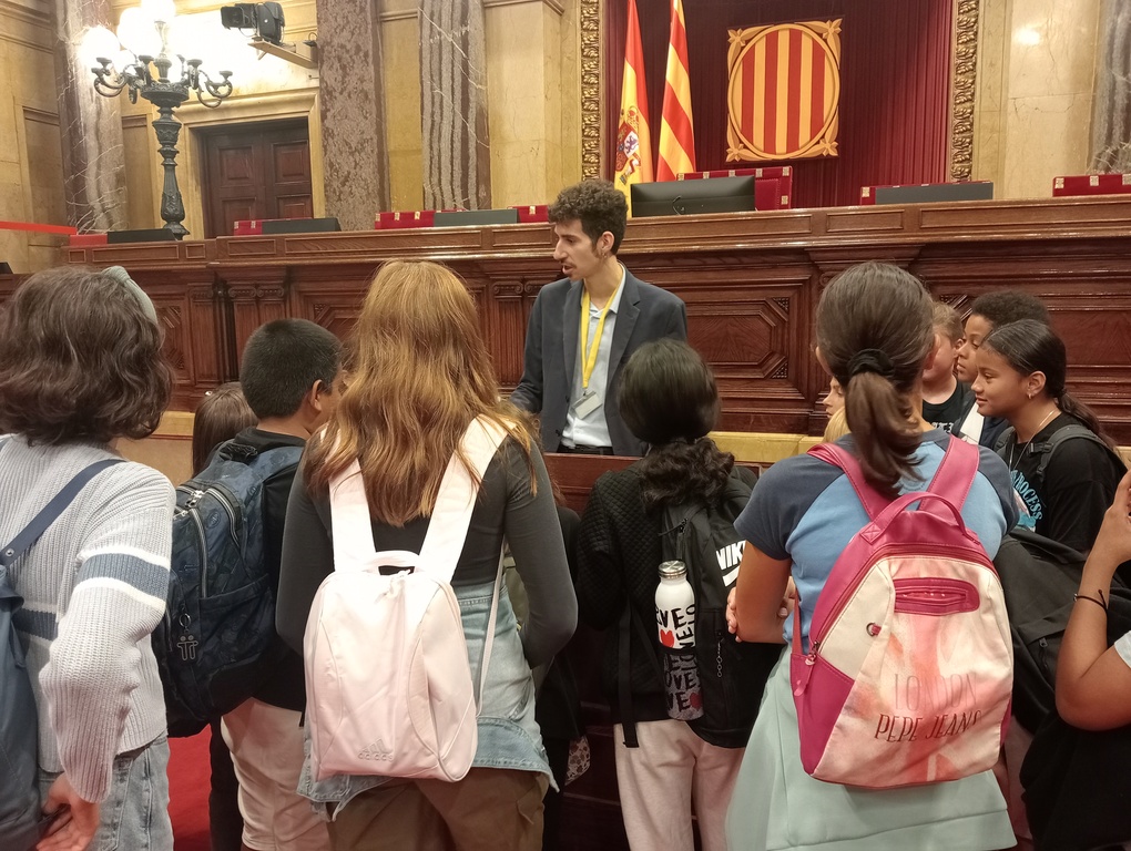 El passat 25 d’octubre, l’alumnat de 6è va fer una visita a l’edifici del Parlament de Catalunya. Vam fer un recorregut que ens va portar per tot l’edifici visitant els espais més emblemàtics, com el saló rosa, el saló gris, el saló dels canelobres o l’hemicicle.