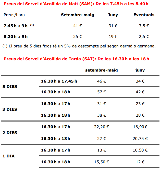 * Les famílies d’I3 podran fer ús del servei un cop finalitzi l’adaptació escolar.