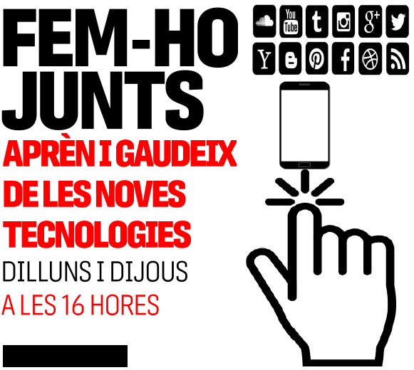 I la segona… sessions individuals i gratuïtes per treure profit del mòbil o de la tauleta, aprendre a fer gestions per Internet o dominar les xarxes socials (Facebook, Twitter, Instagram…). Activitat gratuïta i amb inscripció prèvia
