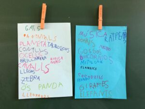 Aquests dies hem començat amb el treball de la “baula” del nom de la classe (1r A, gats; 1r B, dofins; 2n A, desastres naturals i 2n B llamps llampants).