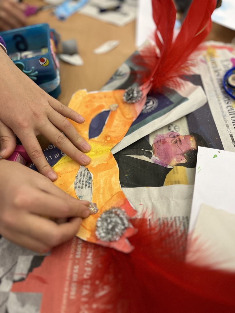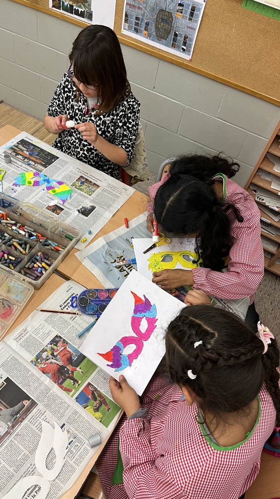 Aquesta setmana, l’alumnat de cicle mitjà ha dissenyat els seus propis models de màscares de Carnaval. La diversitat de maneres d’expressar i compondre en aquest tipus de propostes es fa palpable. Plomes, purpurina i molt de color!