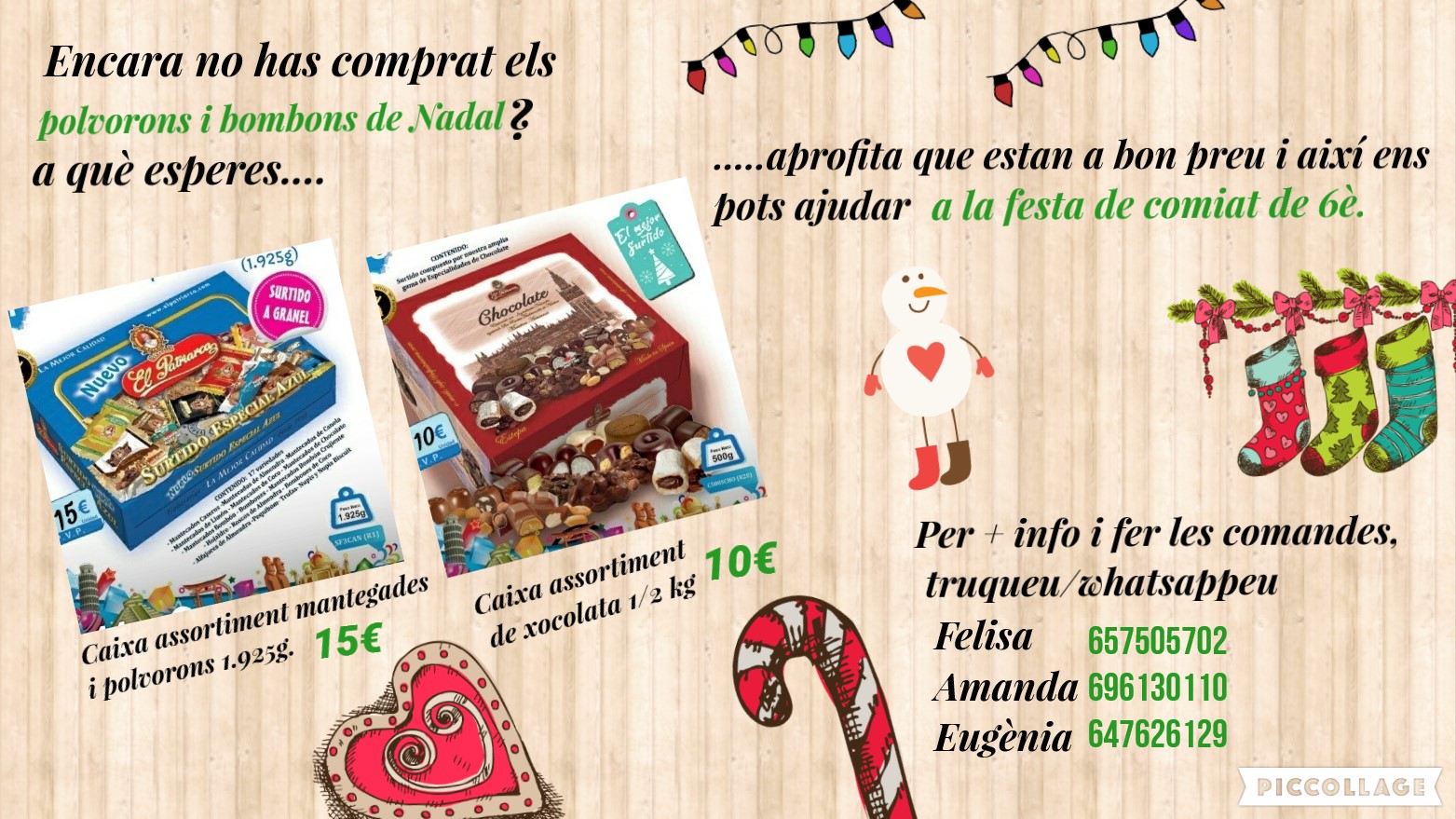 També us recorden que s’han posat a la venda caixes d’assortiment de mantegades i polvorons i també caixes d’assortiment de xocolata del Patriarca. Si voleu fer-ne una reserva, adreceu-vos a la paradeta dels berenars.