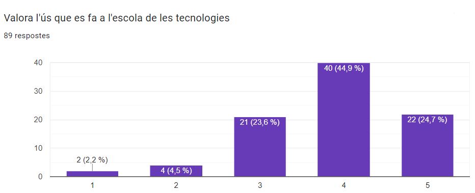 Per analitzar aquestes respostes cal tenir en compte que la majoria de persones que van enviar les seves valoracions eren d’educació infantil i l’ús que es fa de la tecnologia és ben diferent i molt adequat a l’edat dels infants, si el comparem amb l’etapa primària.