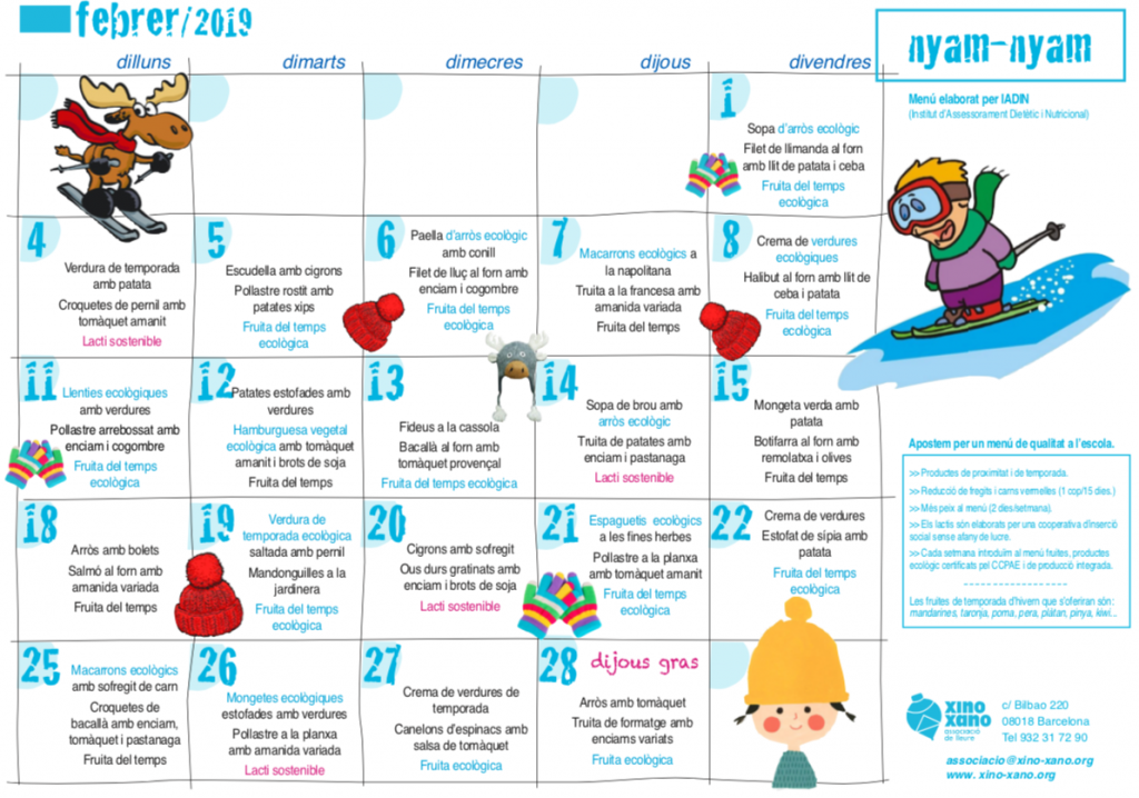Avui ha començat el mes de febrer i per tant, toca un nou menú del servei de menjador.