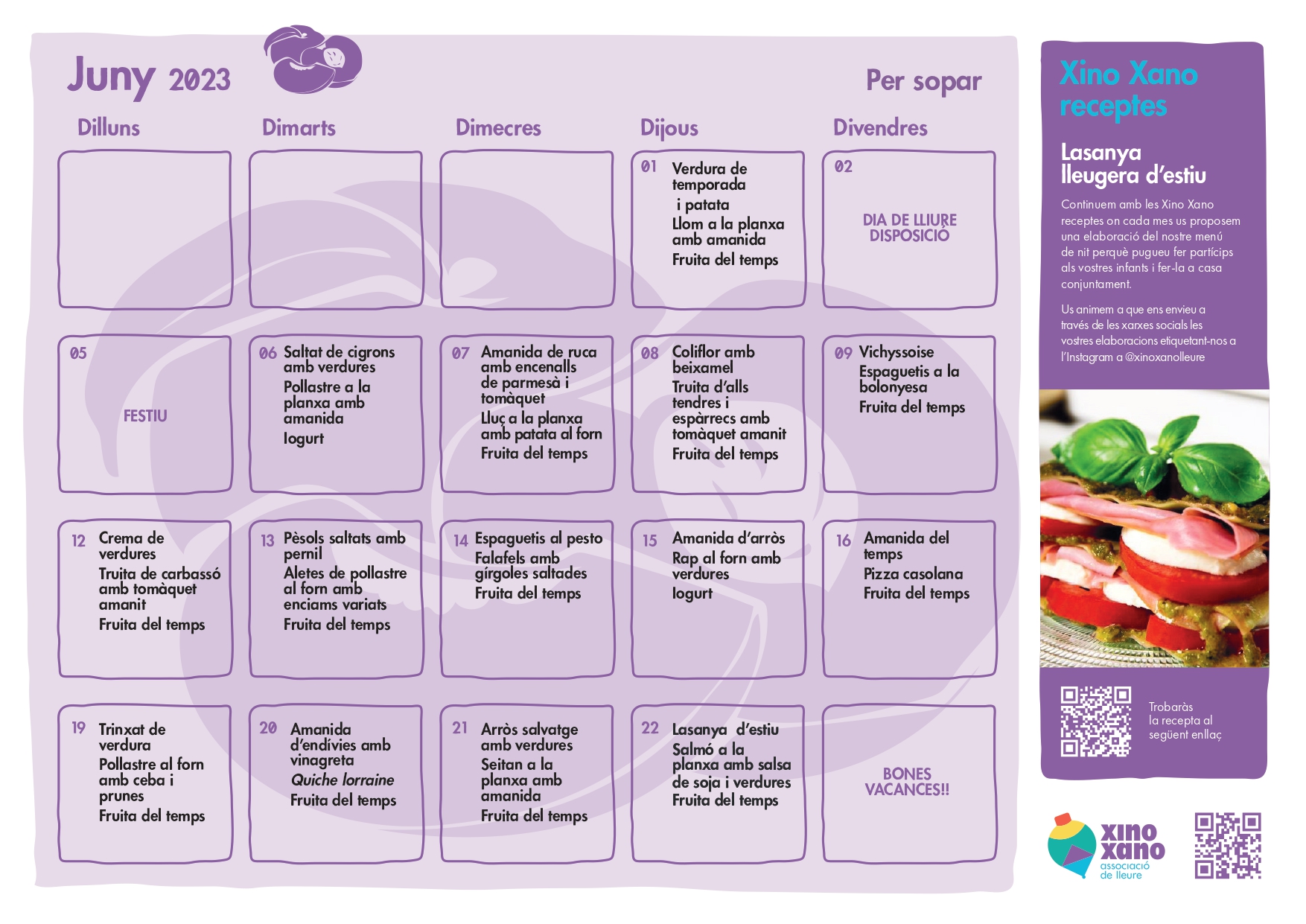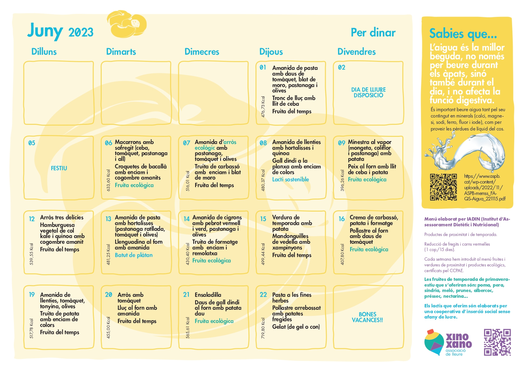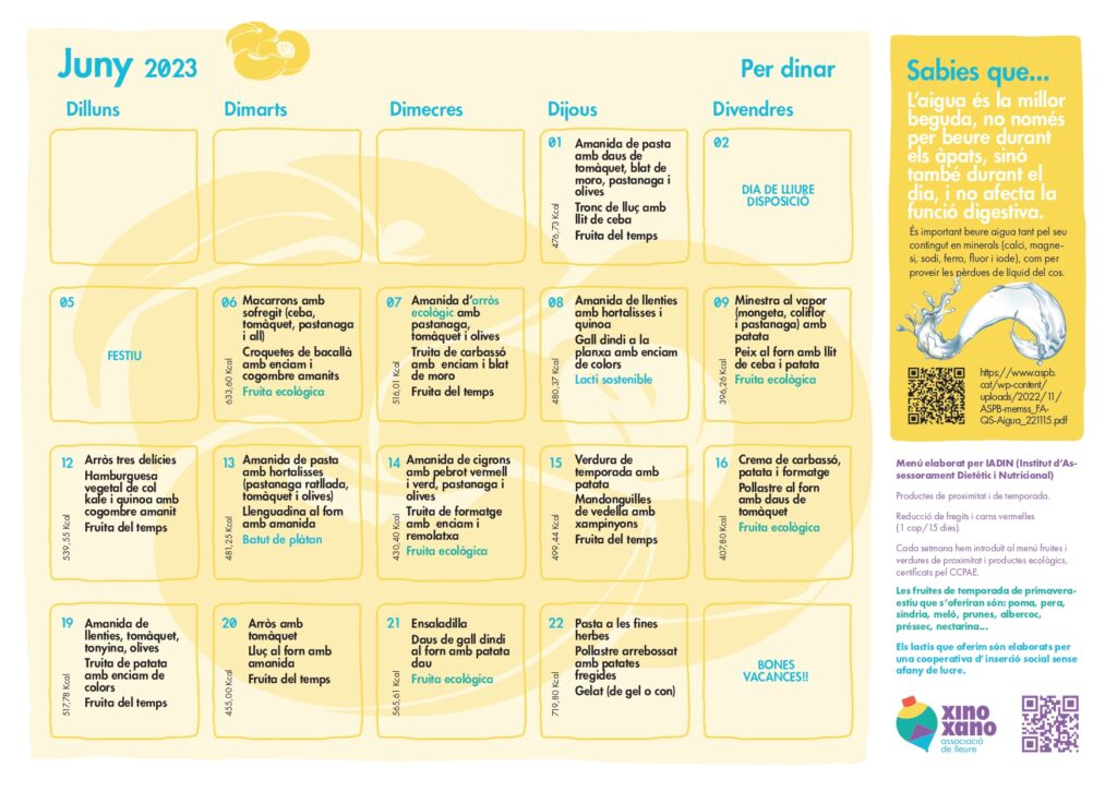 Us fem arribar el menú que la dietista de Xino-Xano ha dissenyat per al mes de juny.
