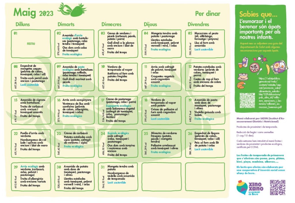 Ja teniu disponibles al web de l’escola els menús corresponents al mes de maig amb totes les seves derivacions i la proposta de sopars.