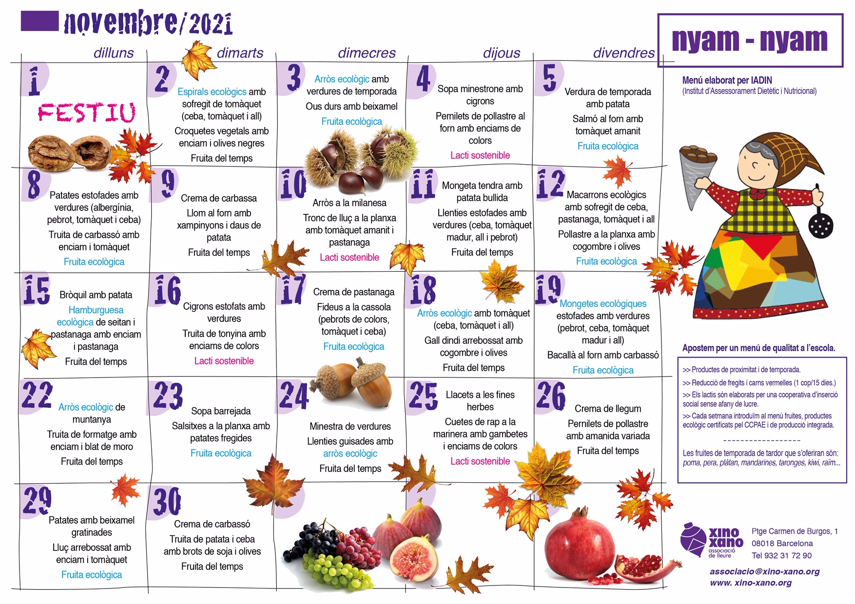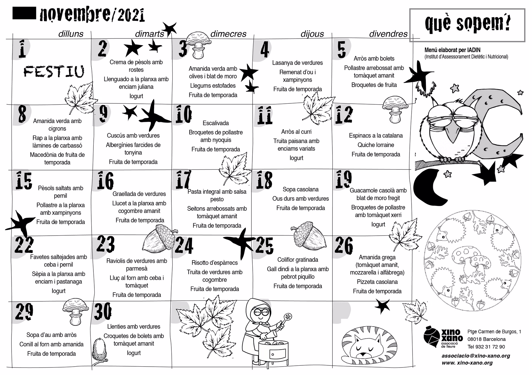 Com cada inici de mes, us oferim el menú previst per al servei de menjador juntament amb la proposta de sopars elaborada per la dietista de Xino-Xano.