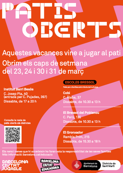 Mentrestant, podeu gaudir dels següents patis oberts al nostre districte.
