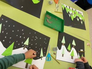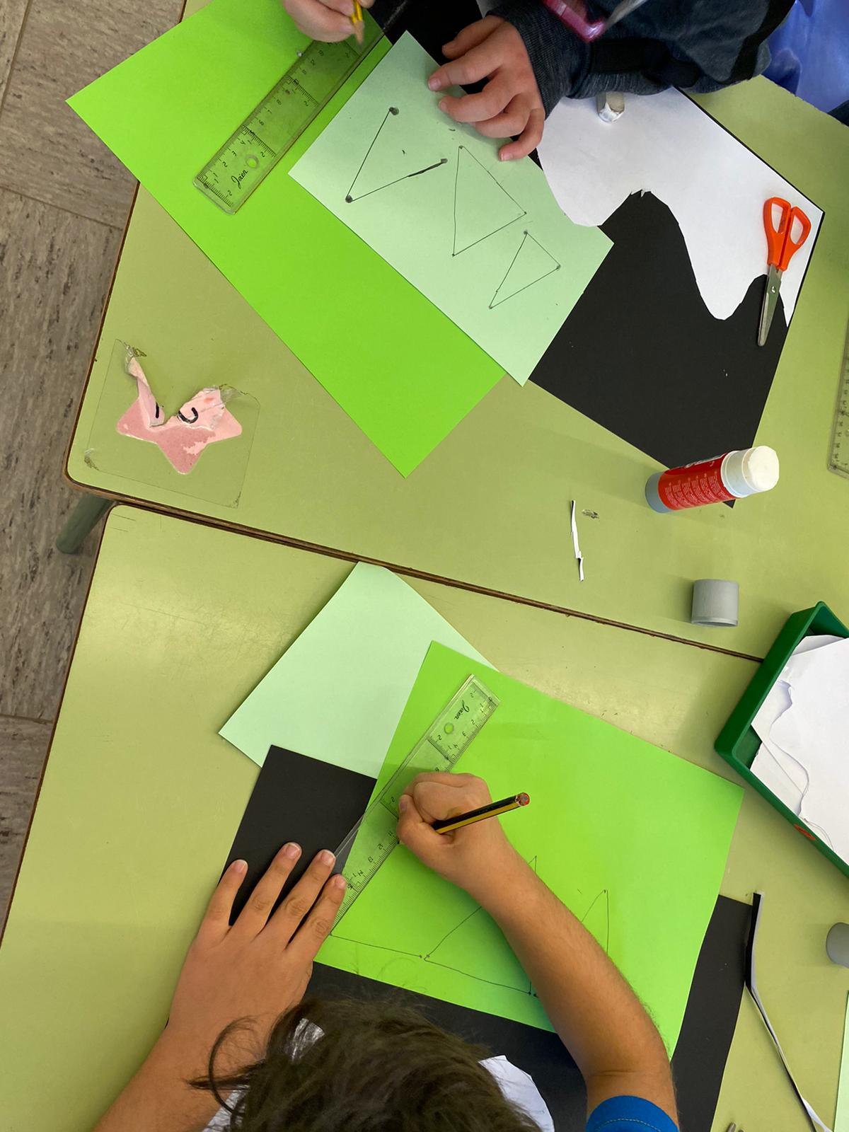 Després, a plàstica, vam continuar amb els triangles i vam crear una composició nadalenca.