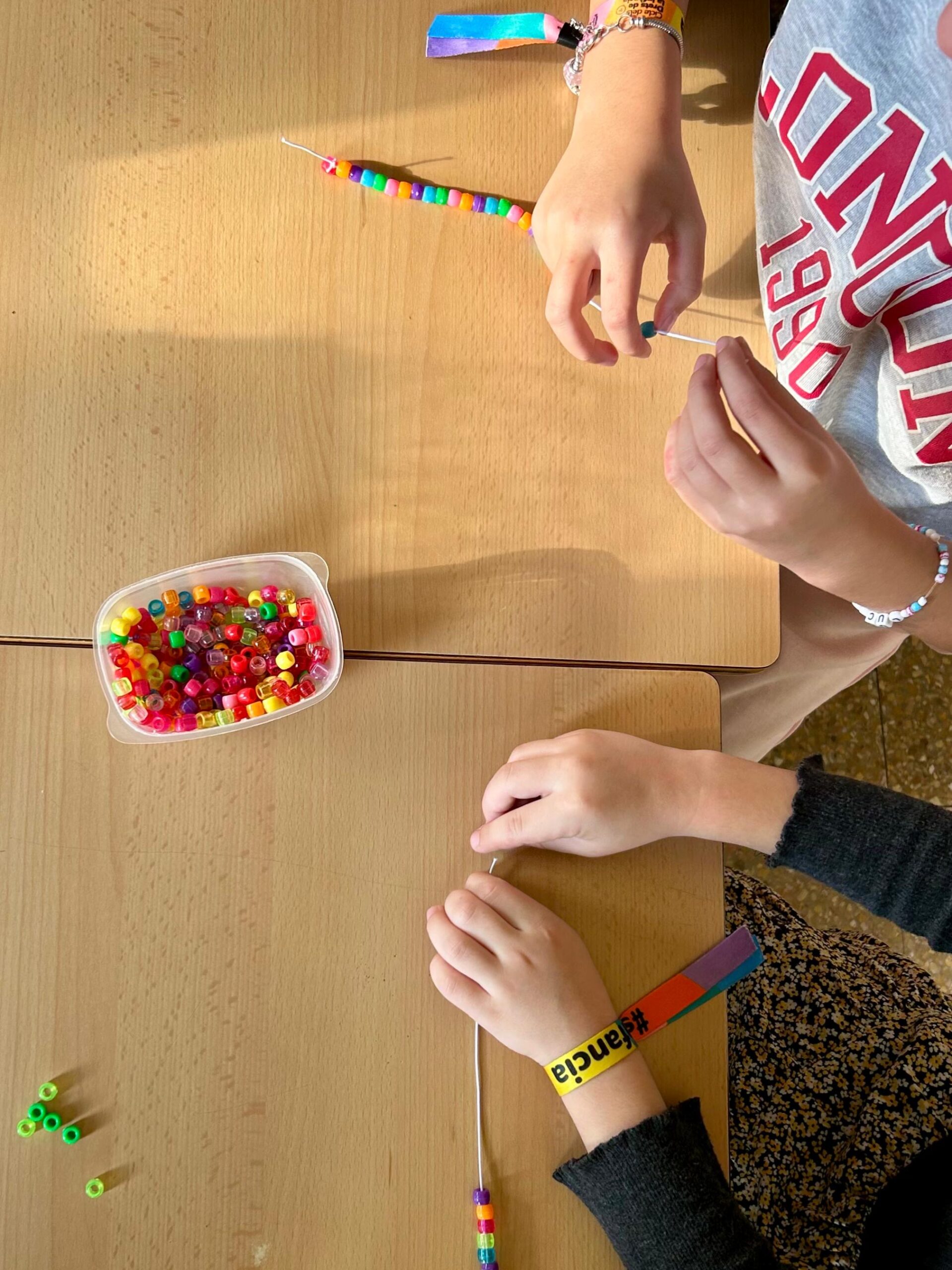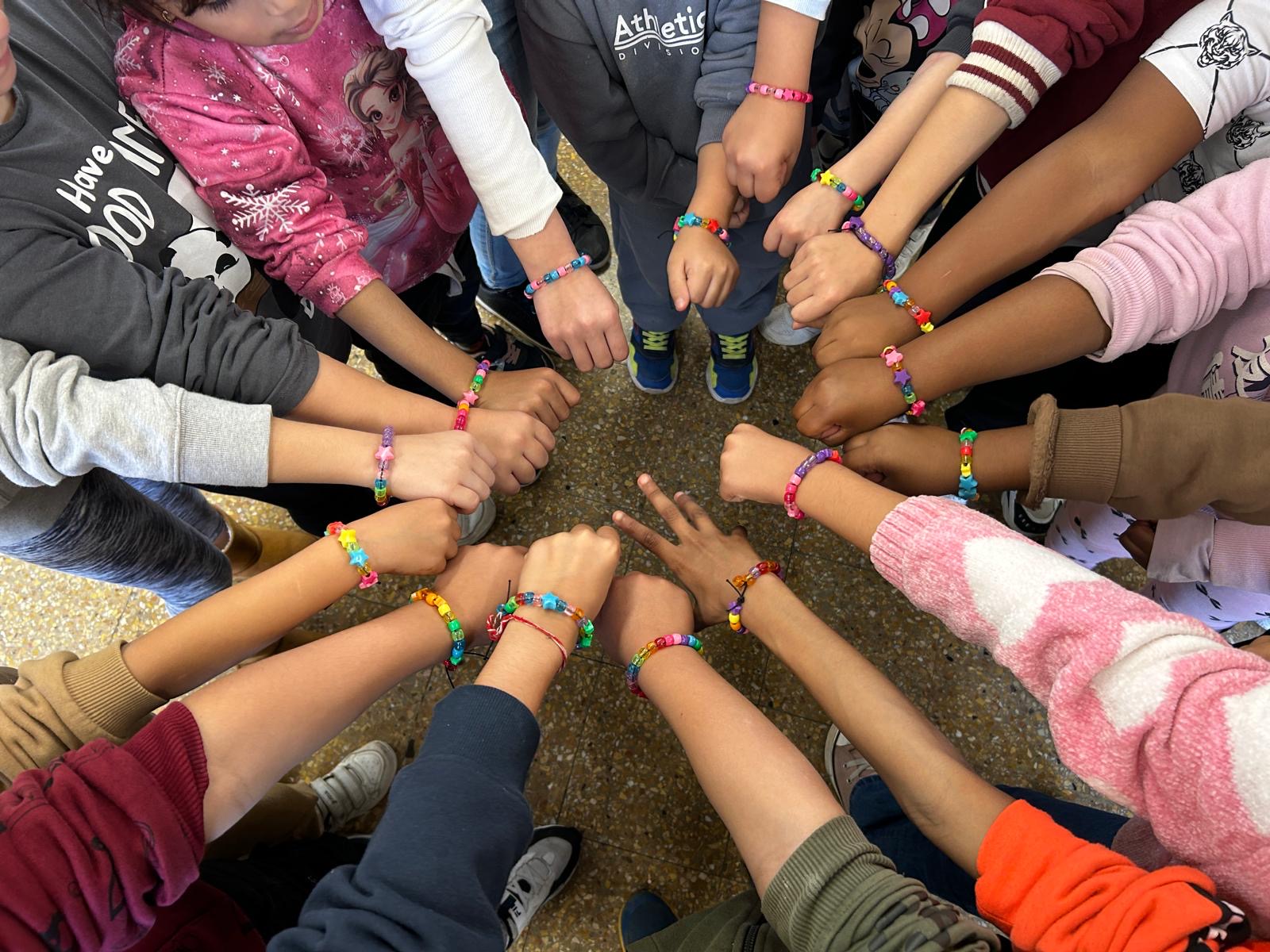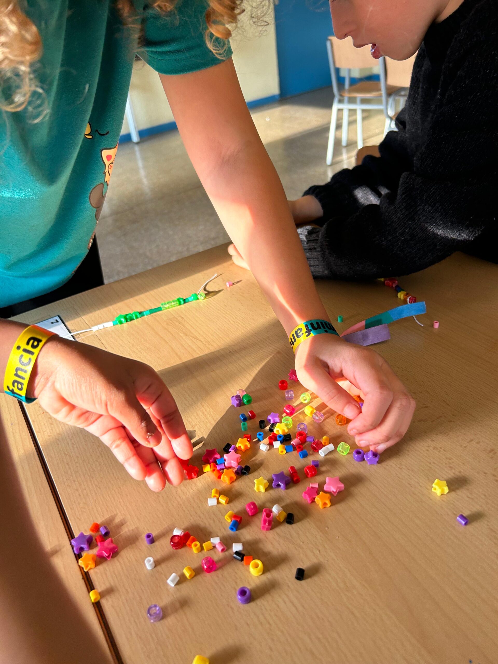 A la tarda vam compartir tots plegats, petits i grans, una estona de convivència fent una activitat conjunta: vam crear les nostres polseres! Ens vam ajudar els uns als altres i vam adonar-nos de la presència dels nostres companys i companyes.