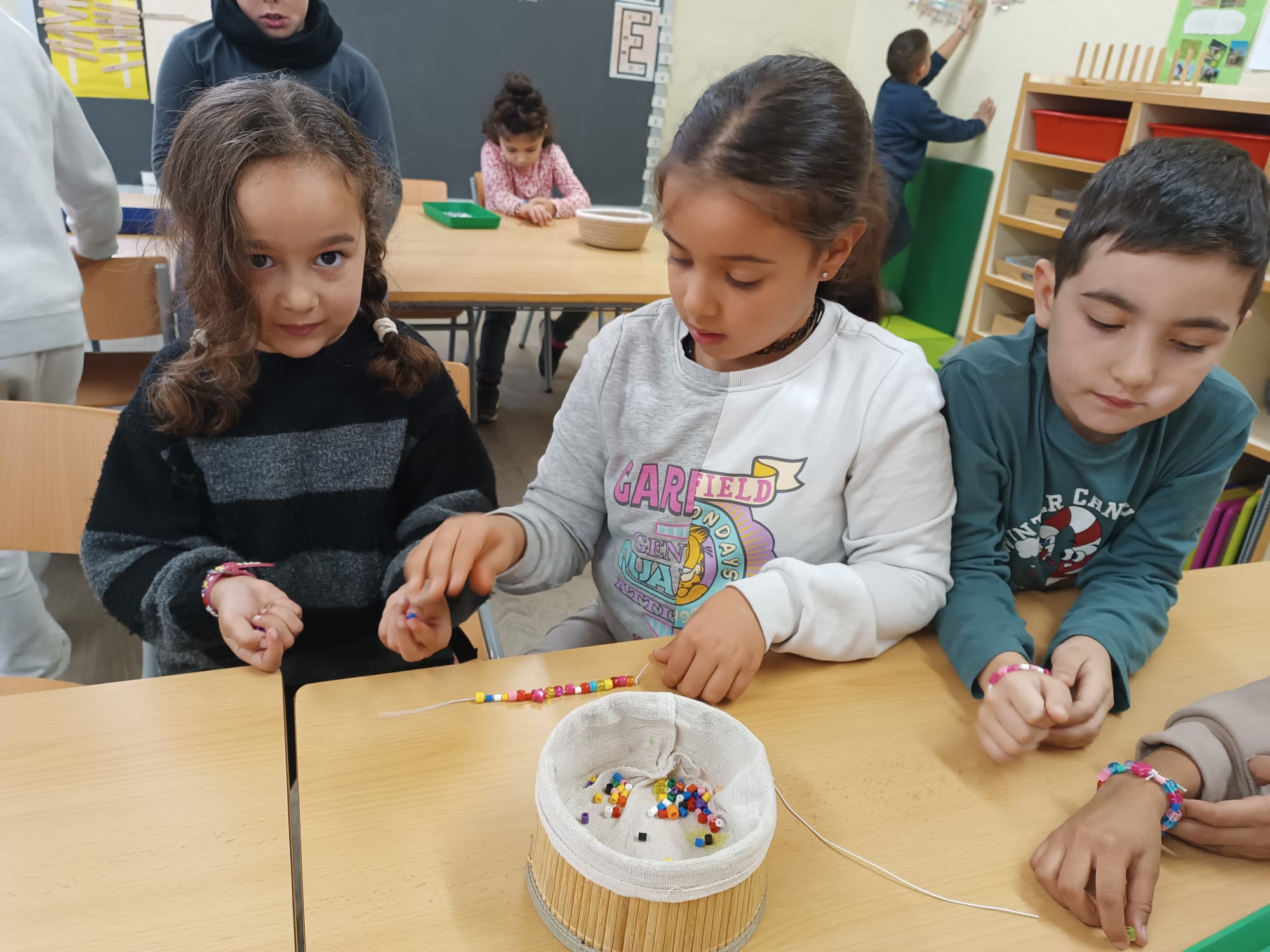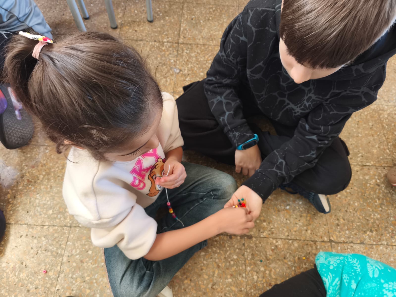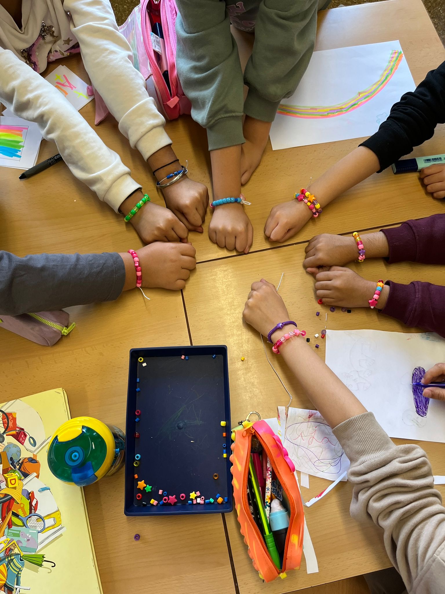 A la tarda vam compartir tots plegats, petits i grans, una estona de convivència fent una activitat conjunta: vam crear les nostres polseres! Ens vam ajudar els uns als altres i vam adonar-nos de la presència dels nostres companys i companyes.