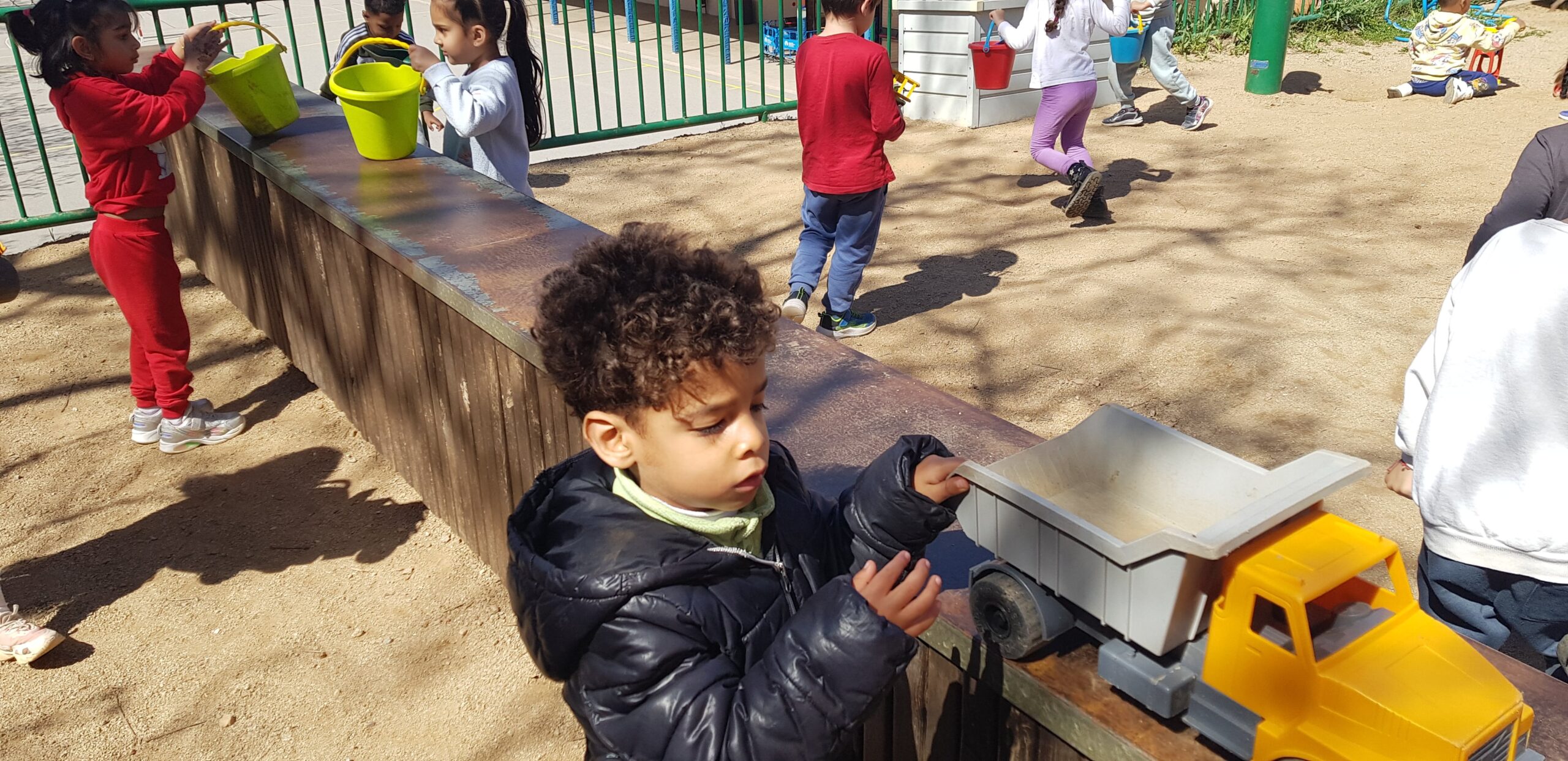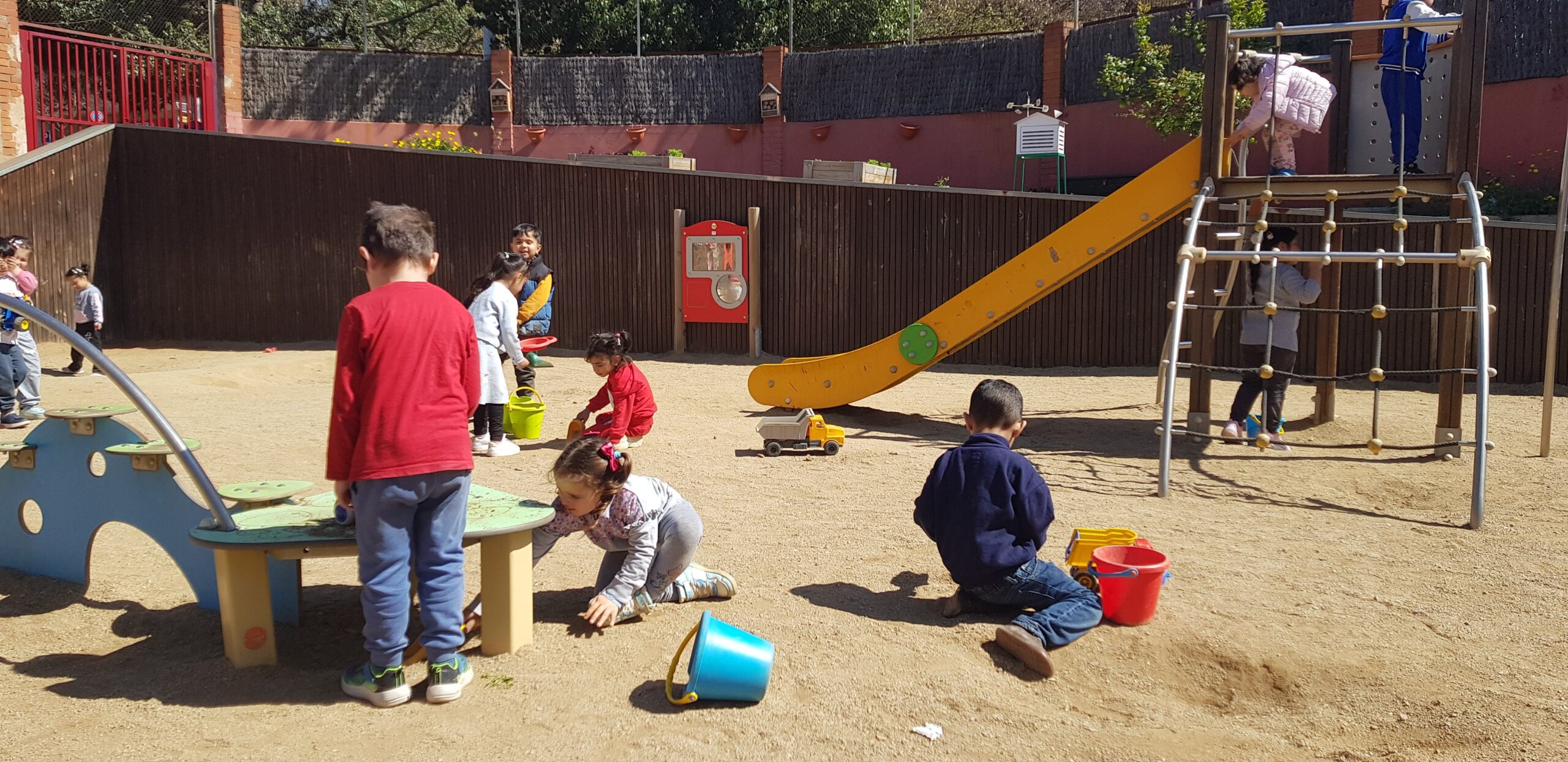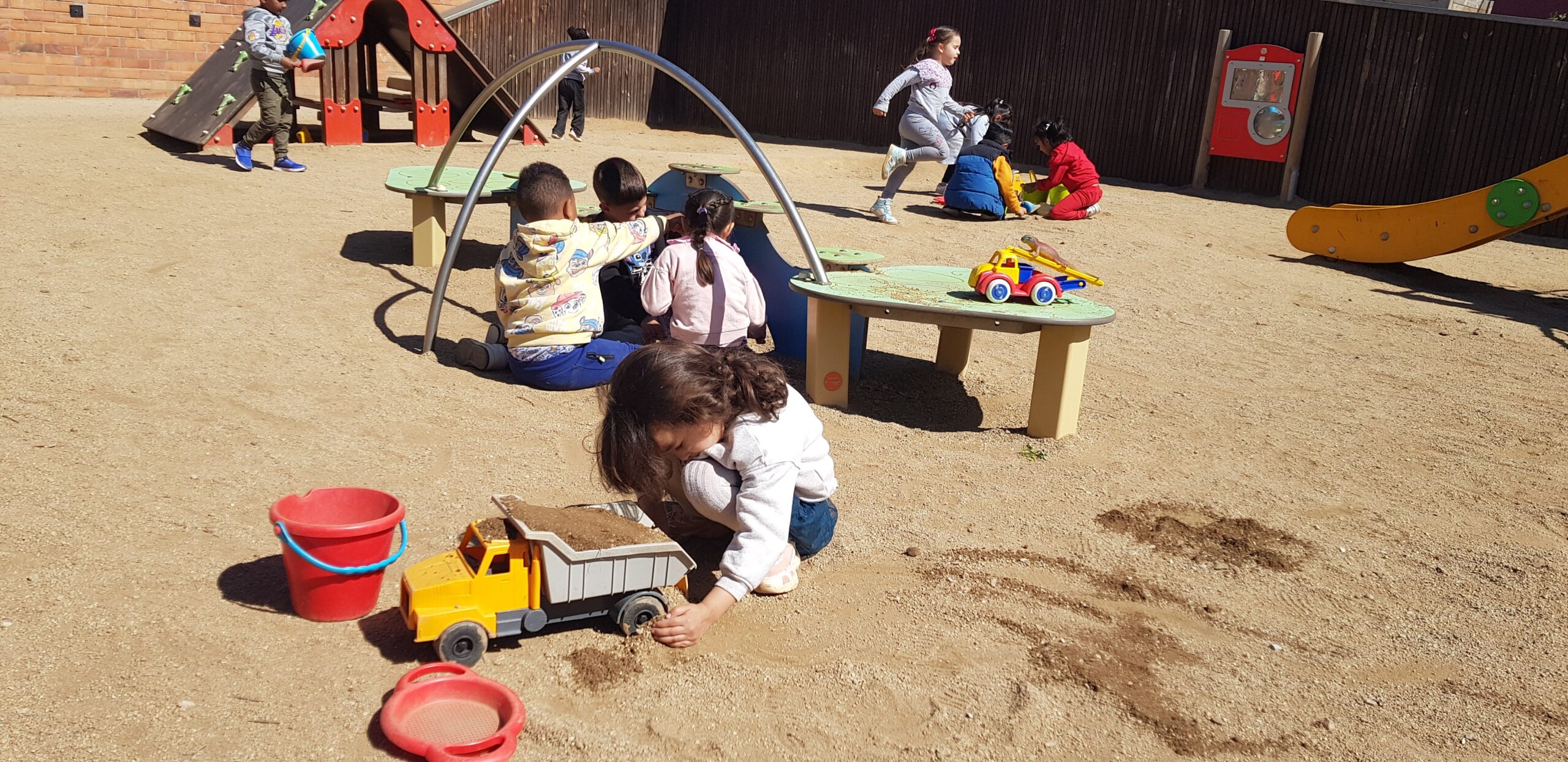 Els dimarts a la tarda, els nens i les nenes d’I4, tenim una activitat que ens agrada molt: anem al pati de sorra!