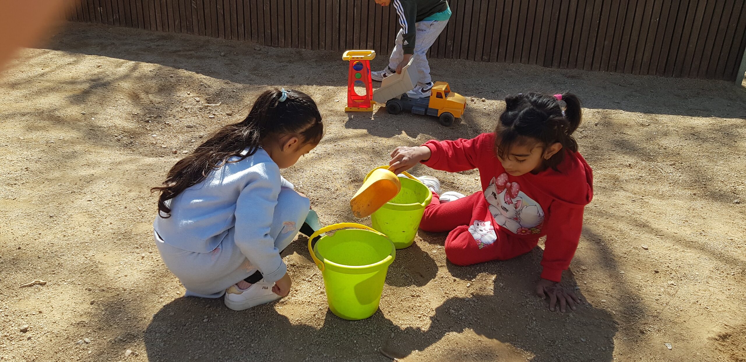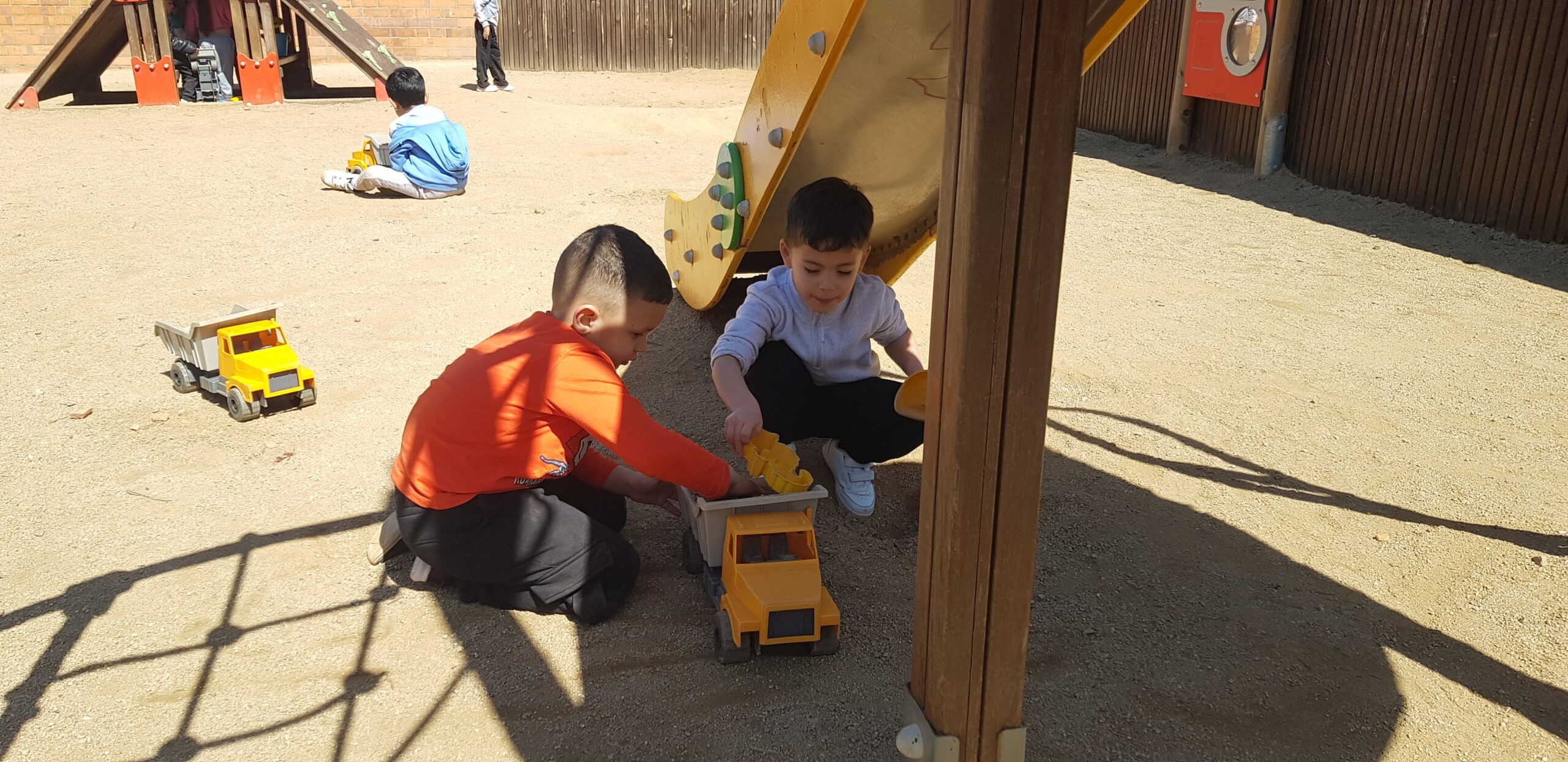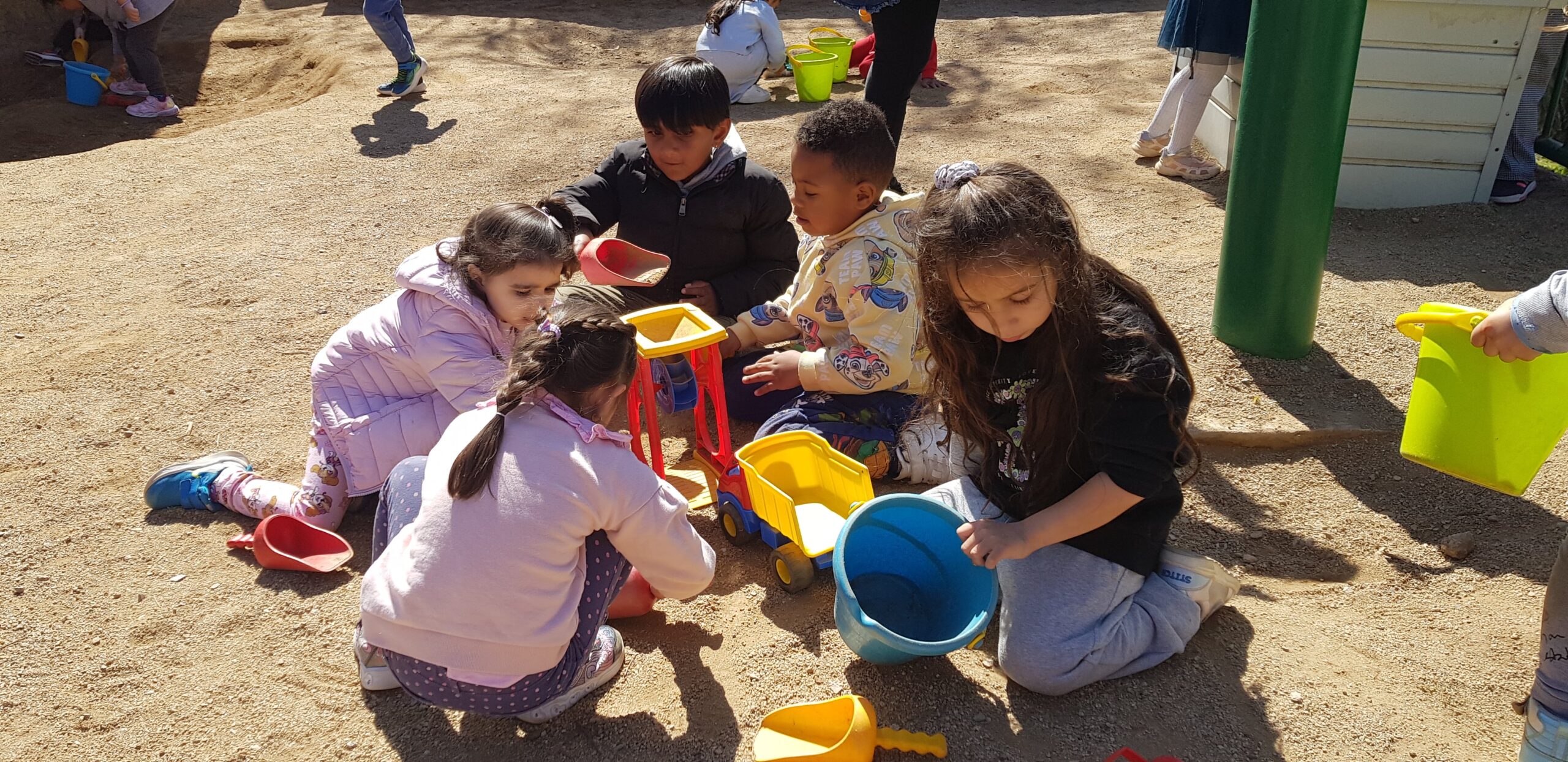 Els dimarts a la tarda, els nens i les nenes d’I4, tenim una activitat que ens agrada molt: anem al pati de sorra!