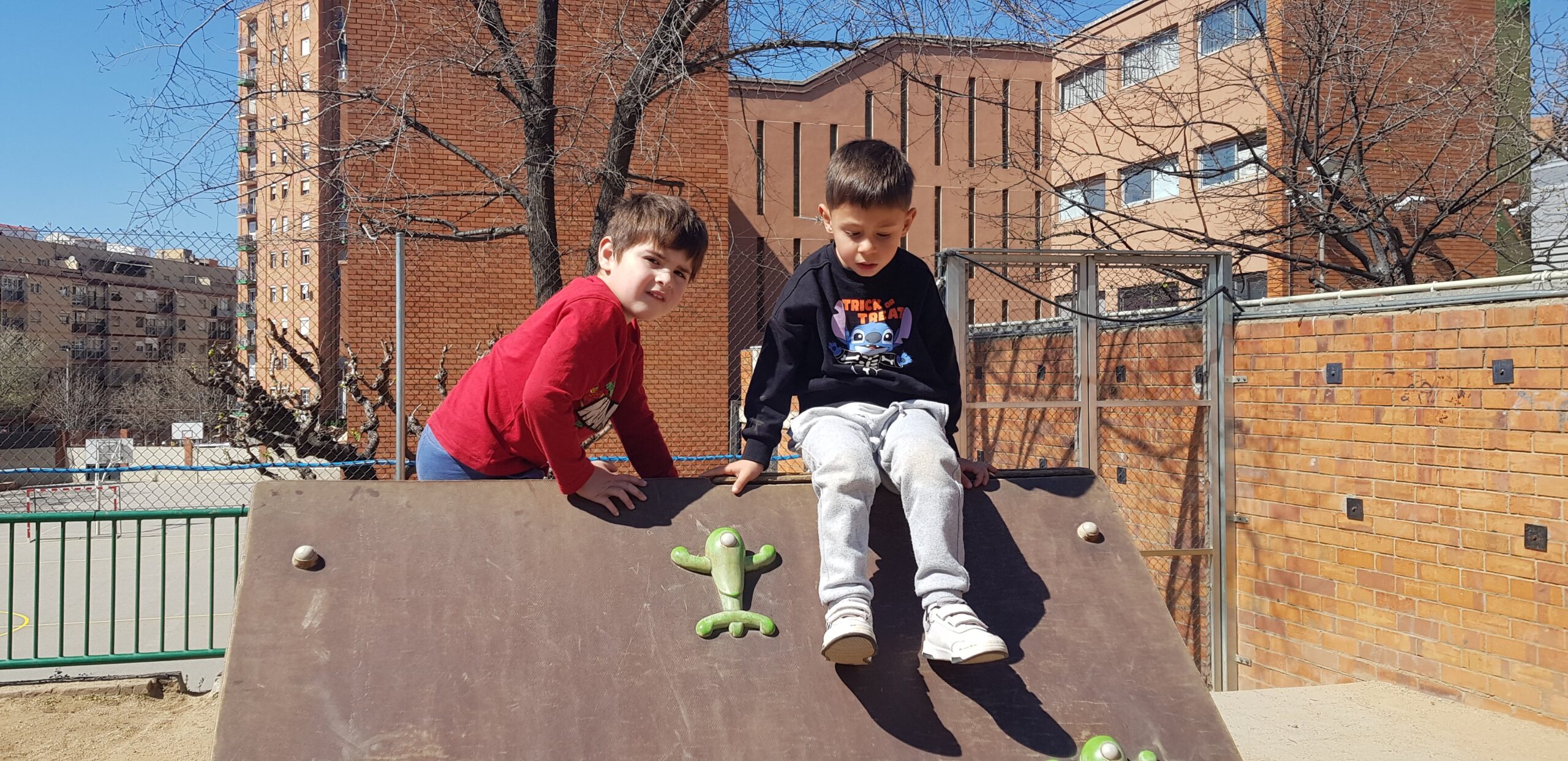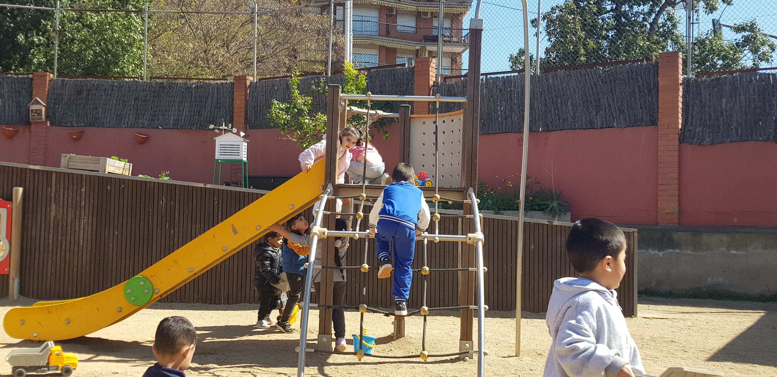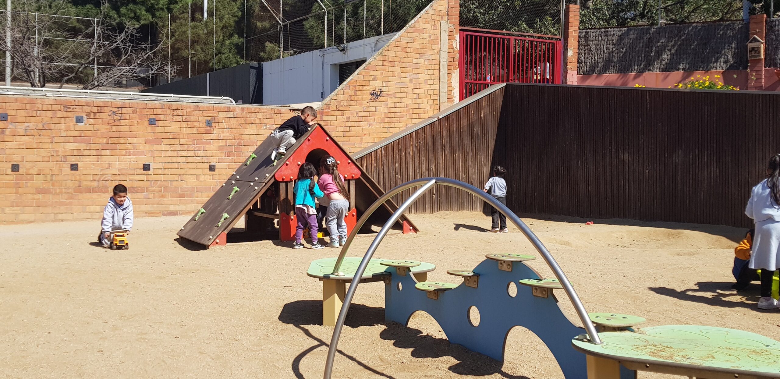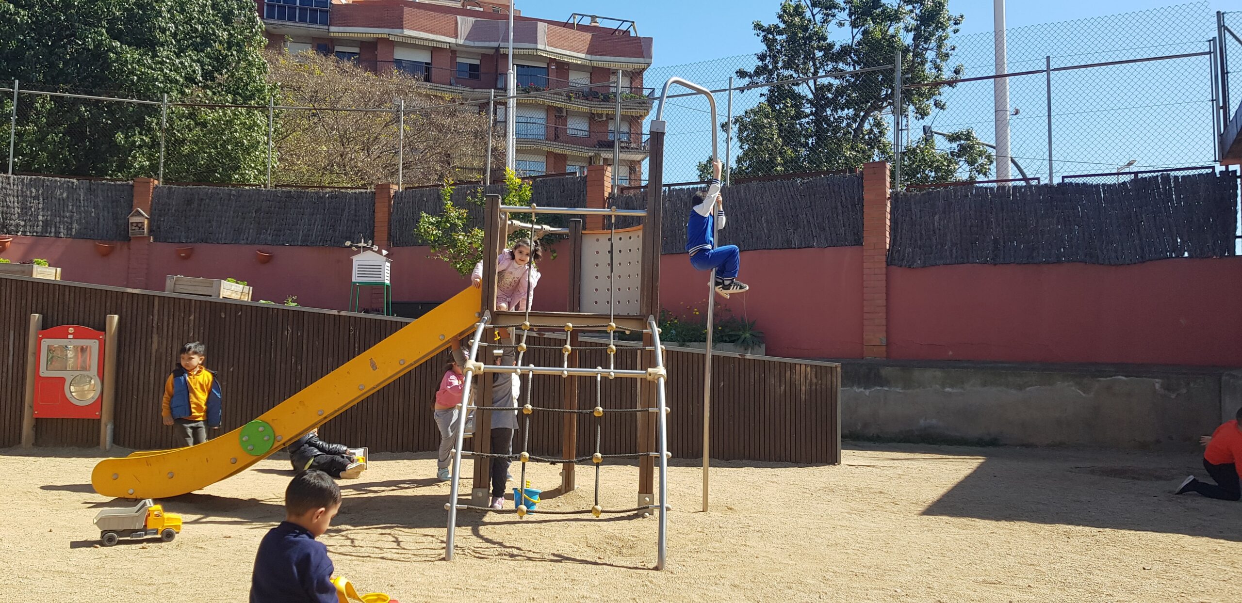 Allí podem pujar al tobogan, baixar com bombers/es, fer castells de sorra, escalar per una casa, transportar sorra i pedretes en uns camions,… ës una tarda molt divertida i ens encanta anar-hi .