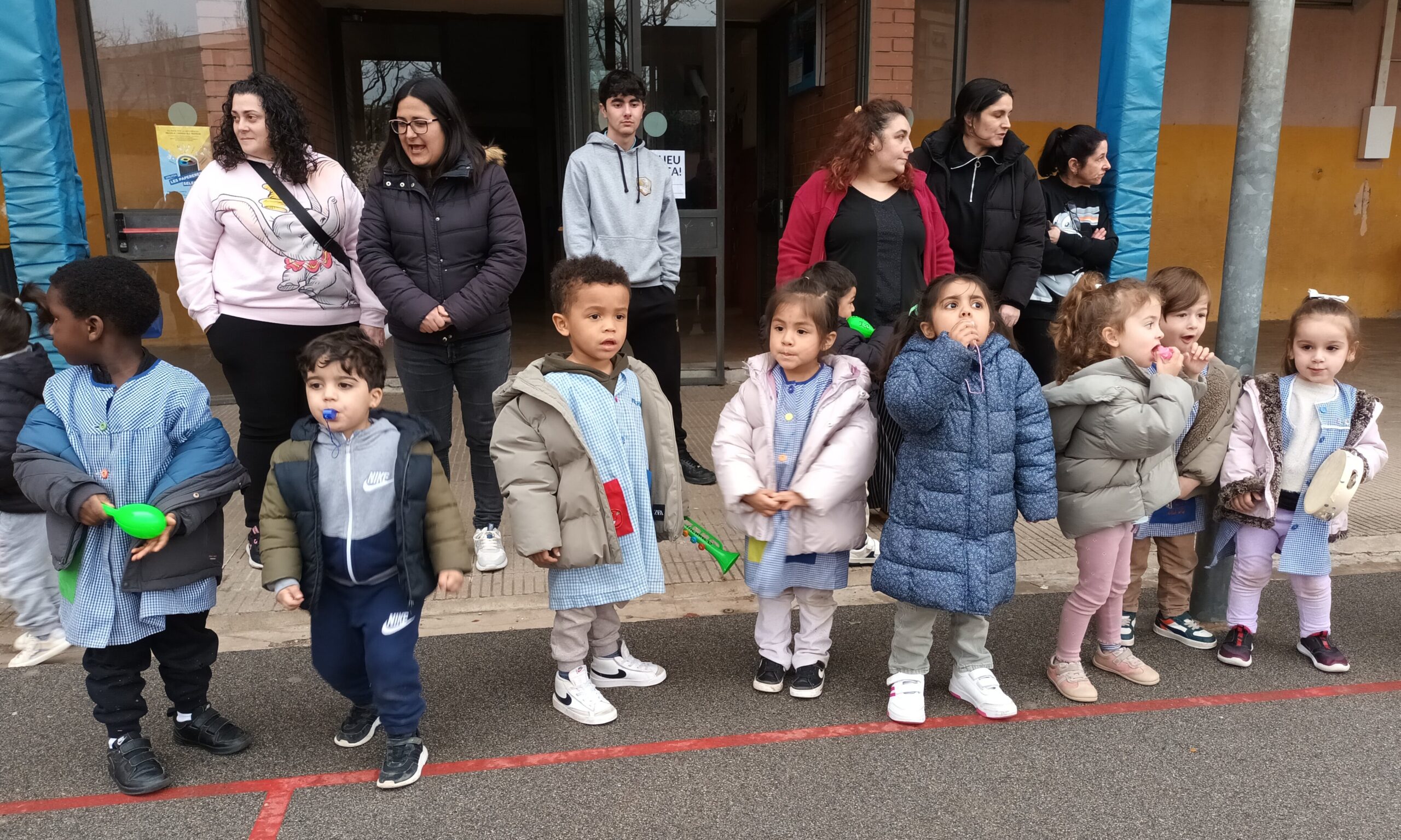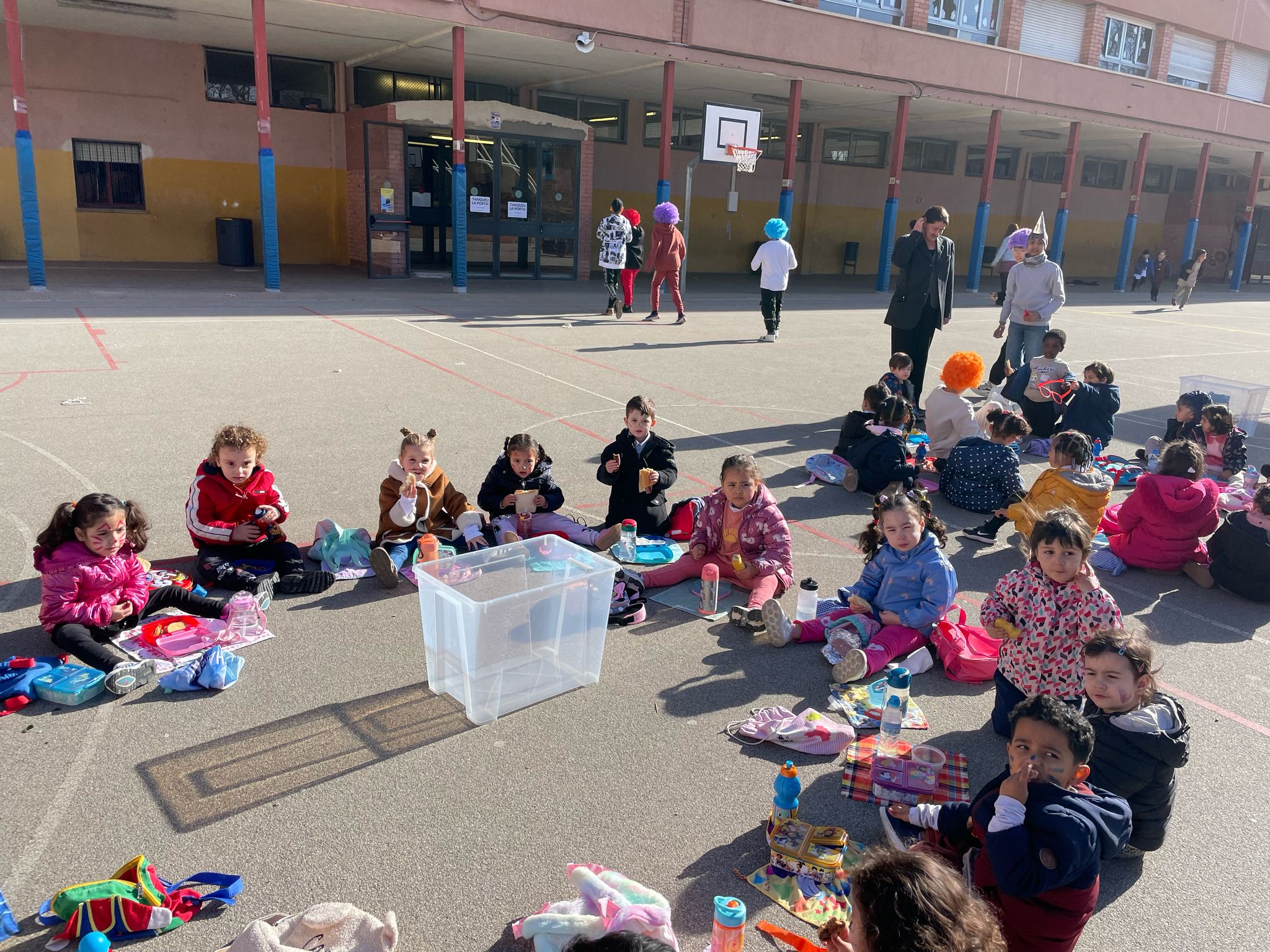 Primerament tots plegats vam rebre al ninot Carnestoltes juntament amb els companys i companyes de l’escola. I vam escoltar el pregó on indicava les consignes que havíem de seguir tots i totes durant la setmana de Carnaval.