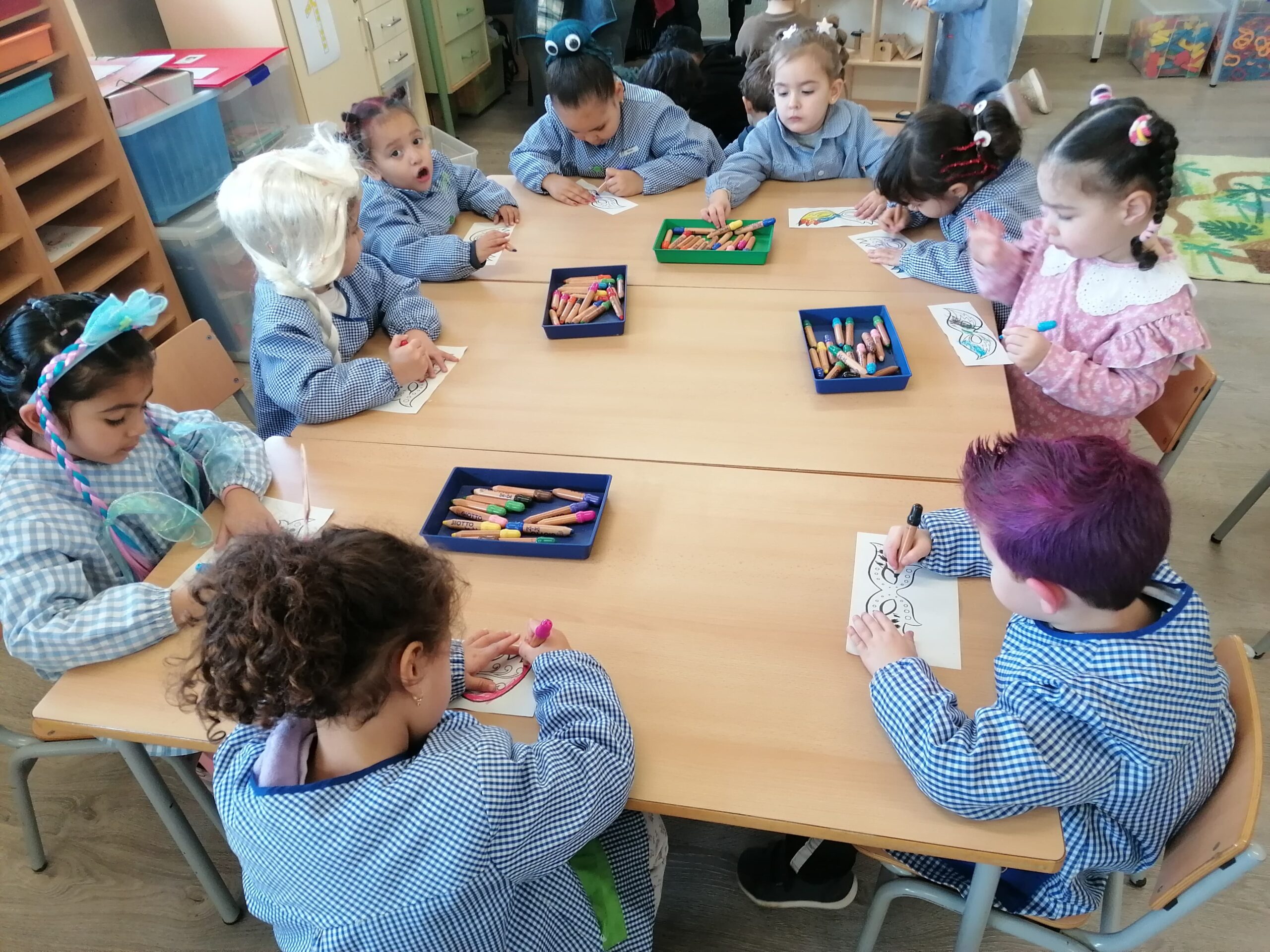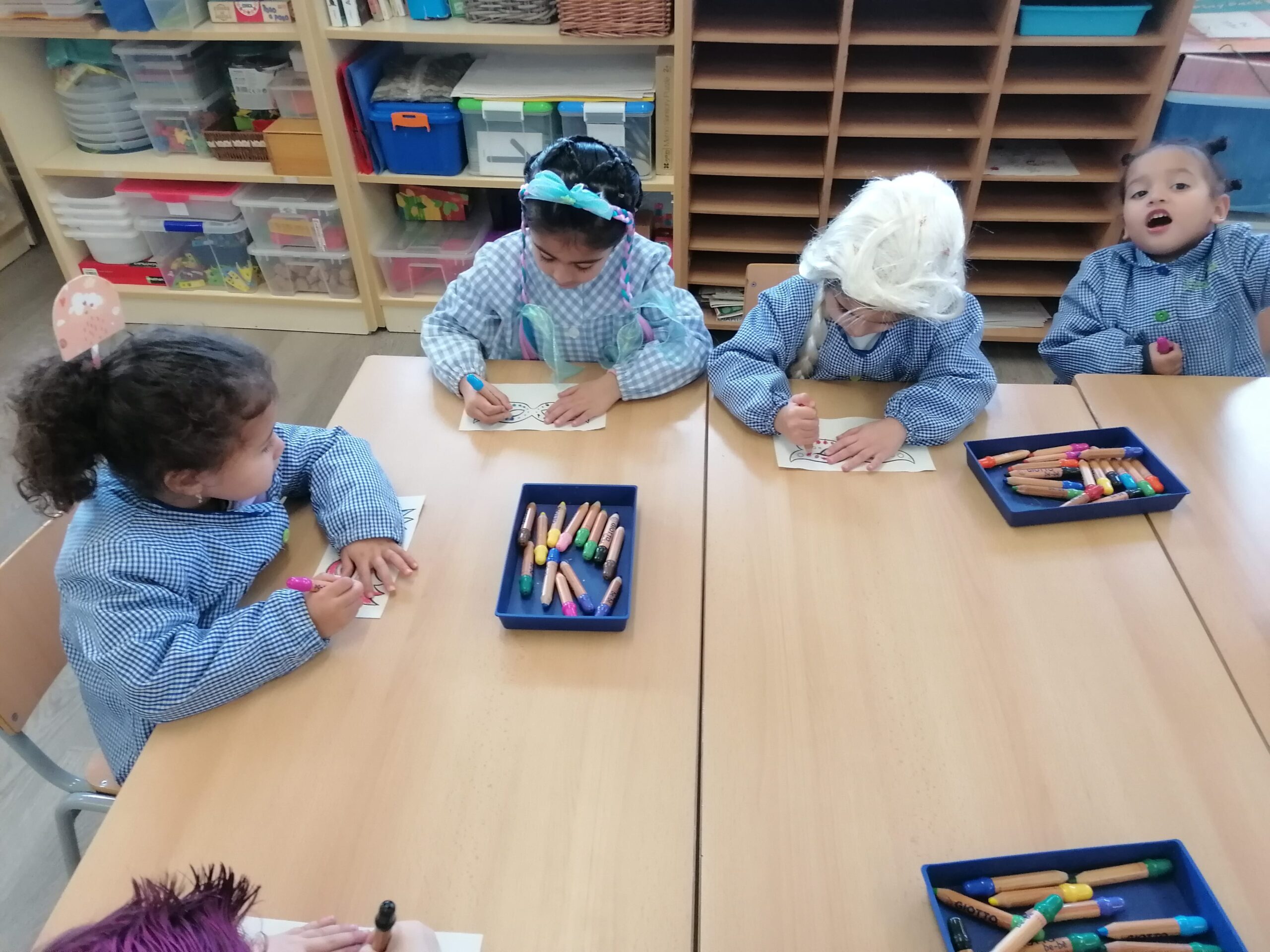 Durant la setmana hem fet diferents activitats plàstiques. Hem pintat màscares i diferents personatges disfressats.