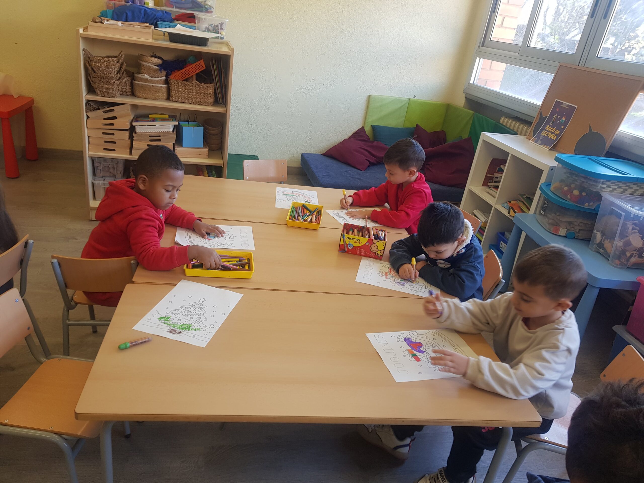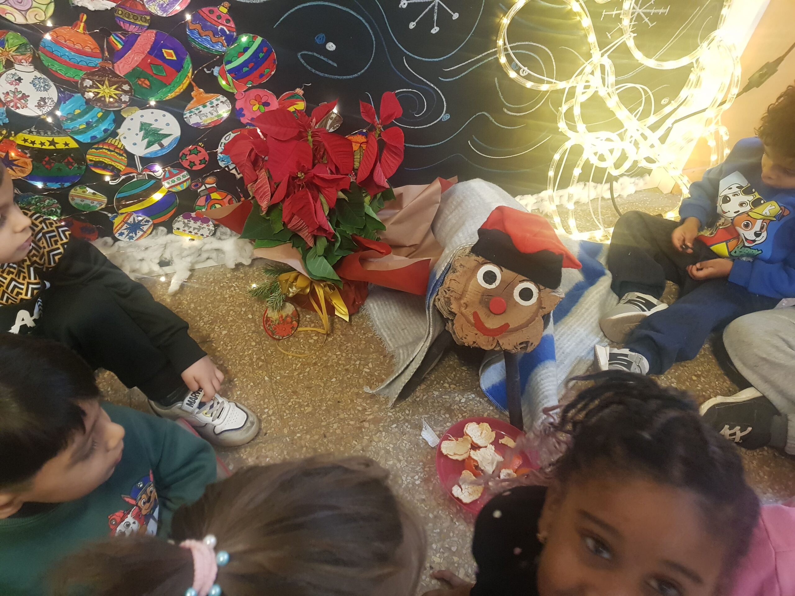 Els nens i nenes d’I4 hem fet durant aquest trimestre algunes activitats relacionades amb l’arribada del Nadal. Hem après i ballat dues nadales per compartir-les amb les famílies i hem fet una postal de Nadal amb la nostra foto i una gran estrella brillant. Durant la setmana del 9 de desembre hem rebut la visita sorpresa del Tió de Nadal, al que hem anat alimentant durant aquests dies perquè agafi forces i cagui moltes xocolates i joguines. Finalment, el divendres 20 de desembre hem pogut gaudir del Tió fent-li cagar a cop de bastó al ritme de la cançó Caga tió…  i sorpresa! El Tió ens ha deixat xocolates i un joc d’allò més divertit!