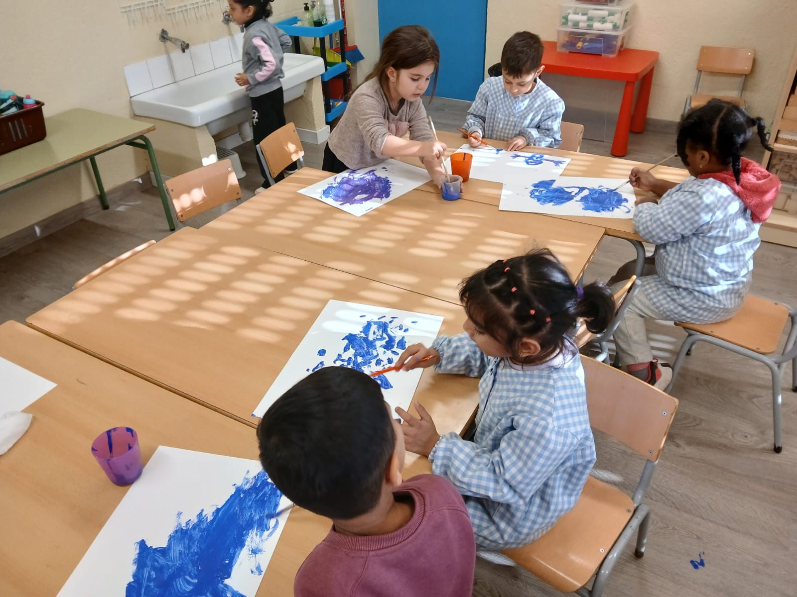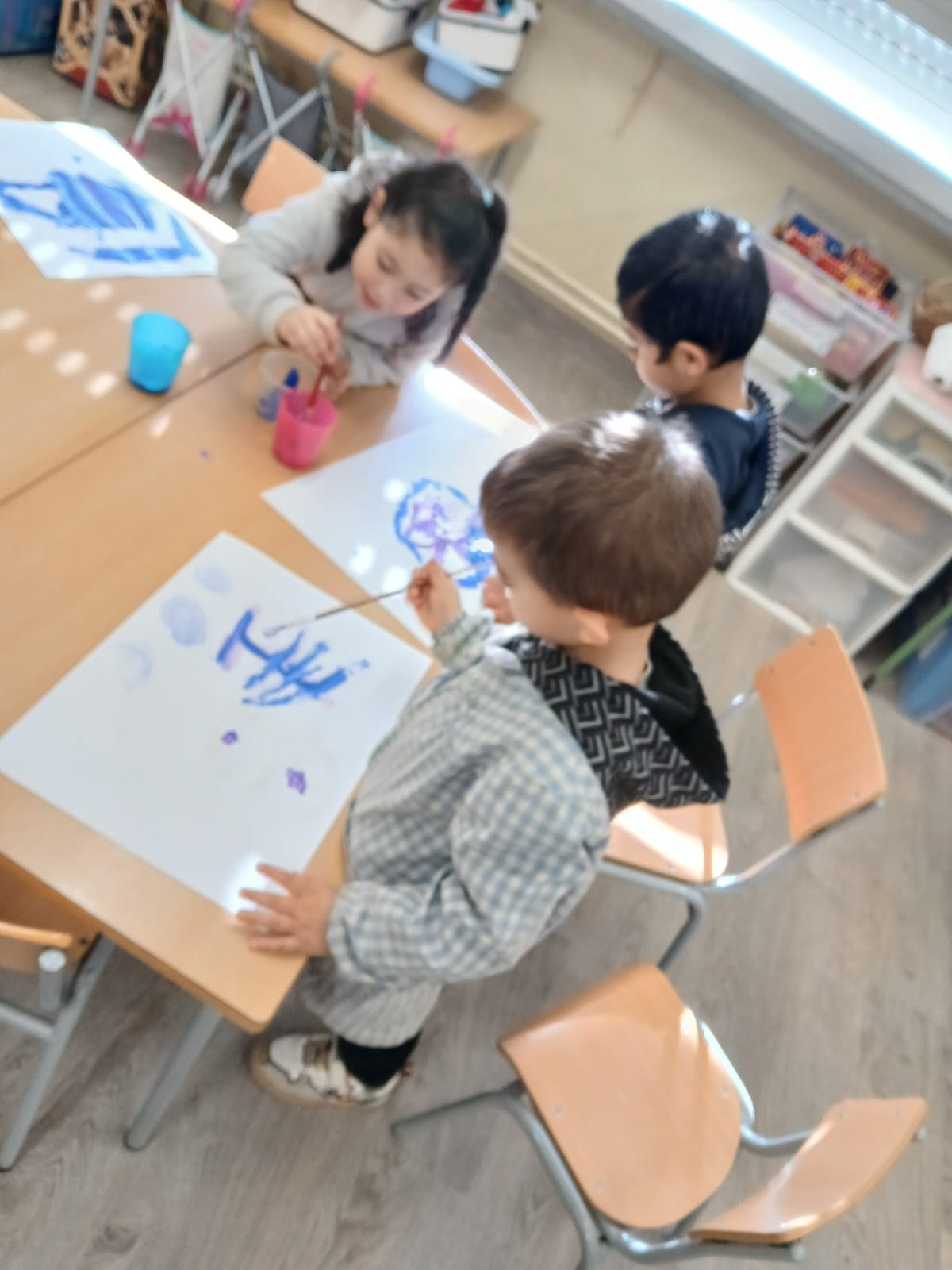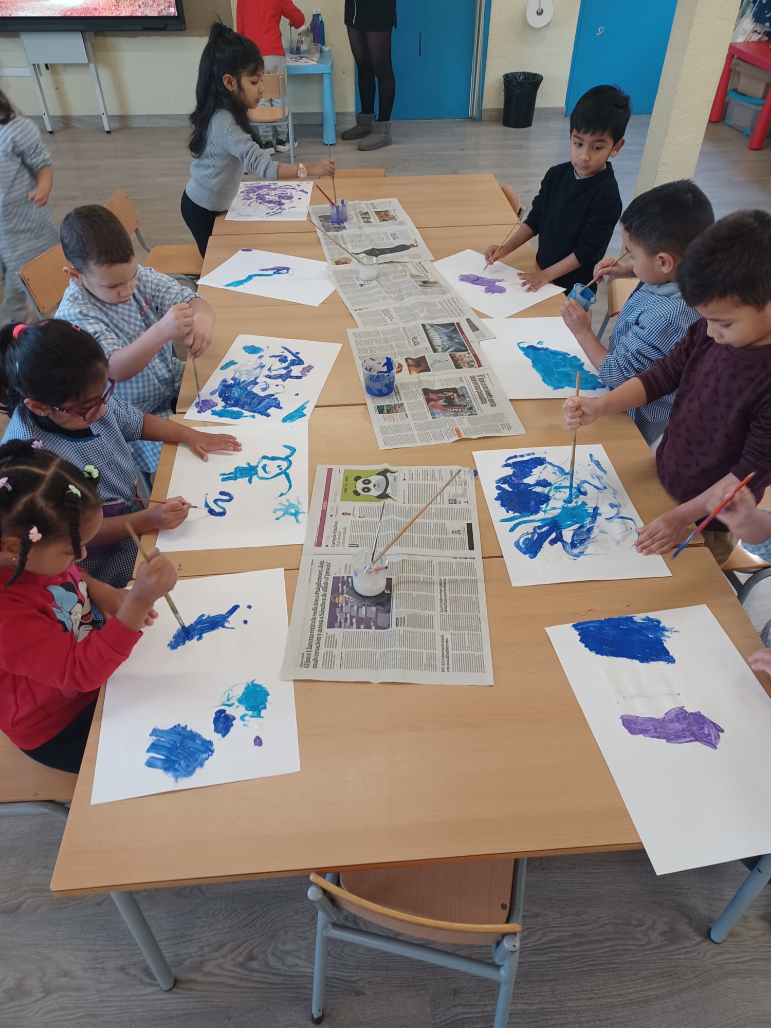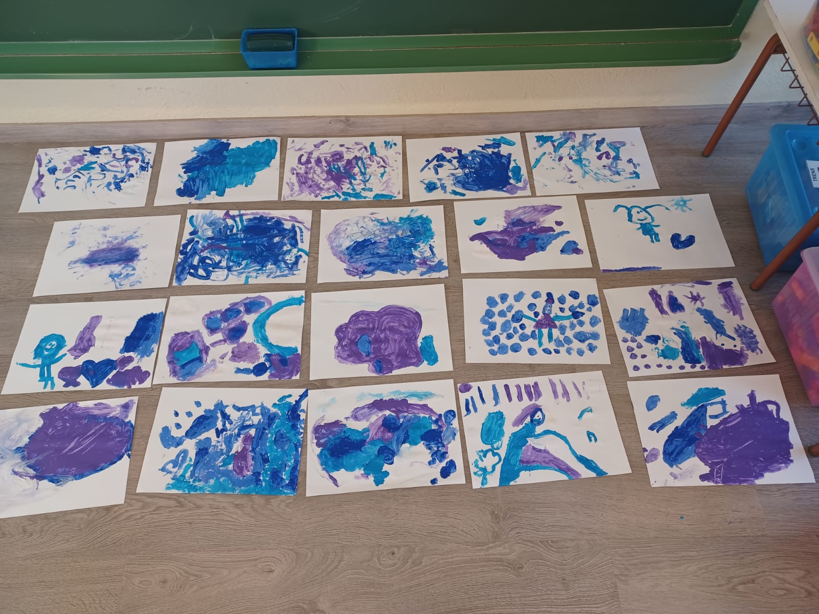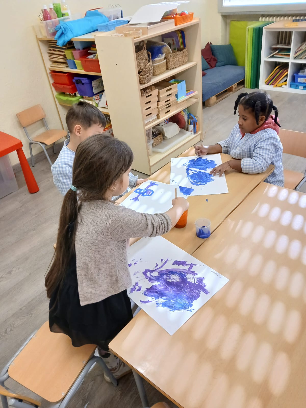 Els infants d’I4 hem gaudit de la pintura dels colors de l’hivern: blau clar, blau fosc, lila i blanc tot dibuixant lliurement mentre escoltaven la cançó de l’hivern de les 4 estacions de d’Antonio Vivaldi.
