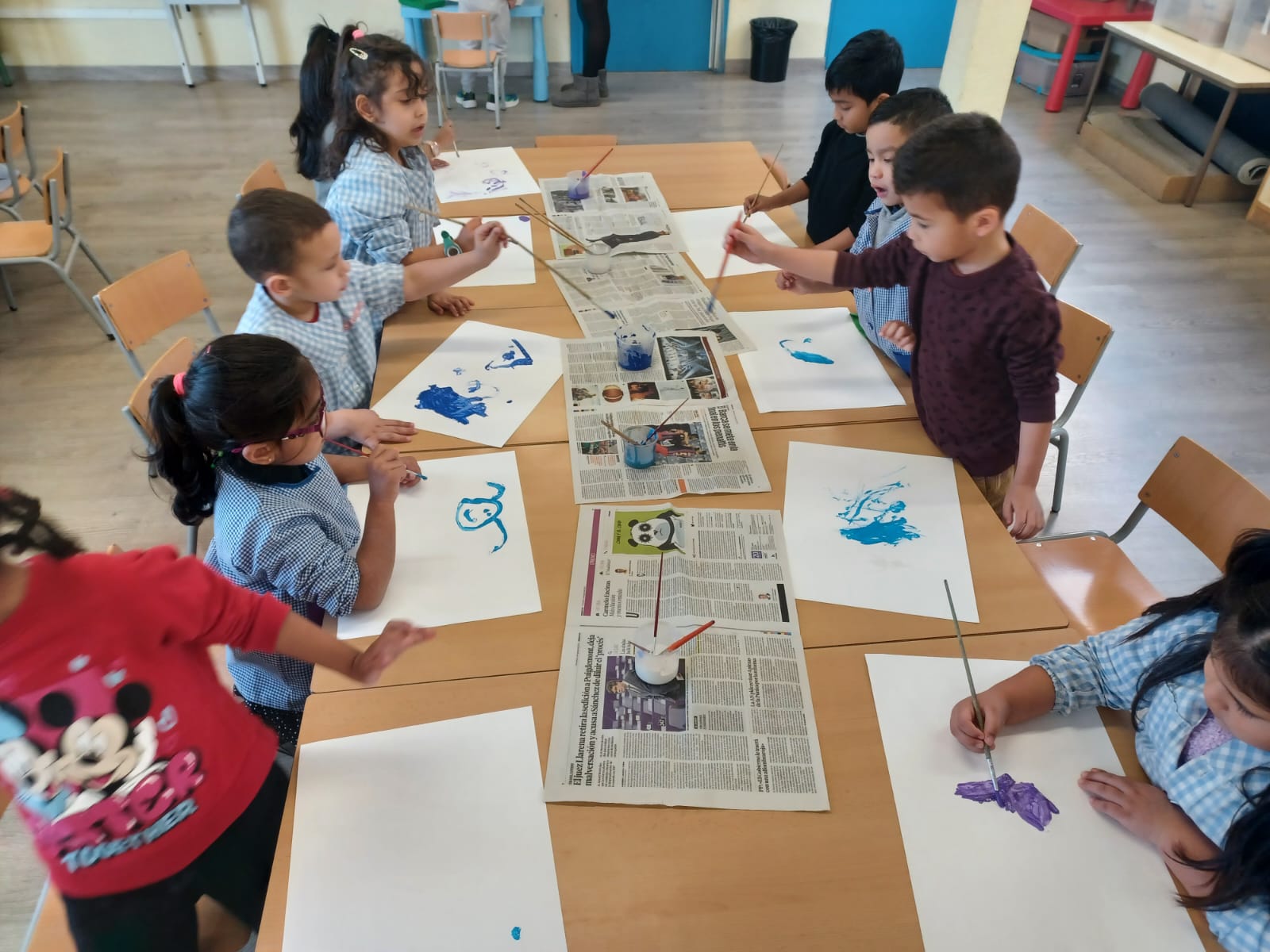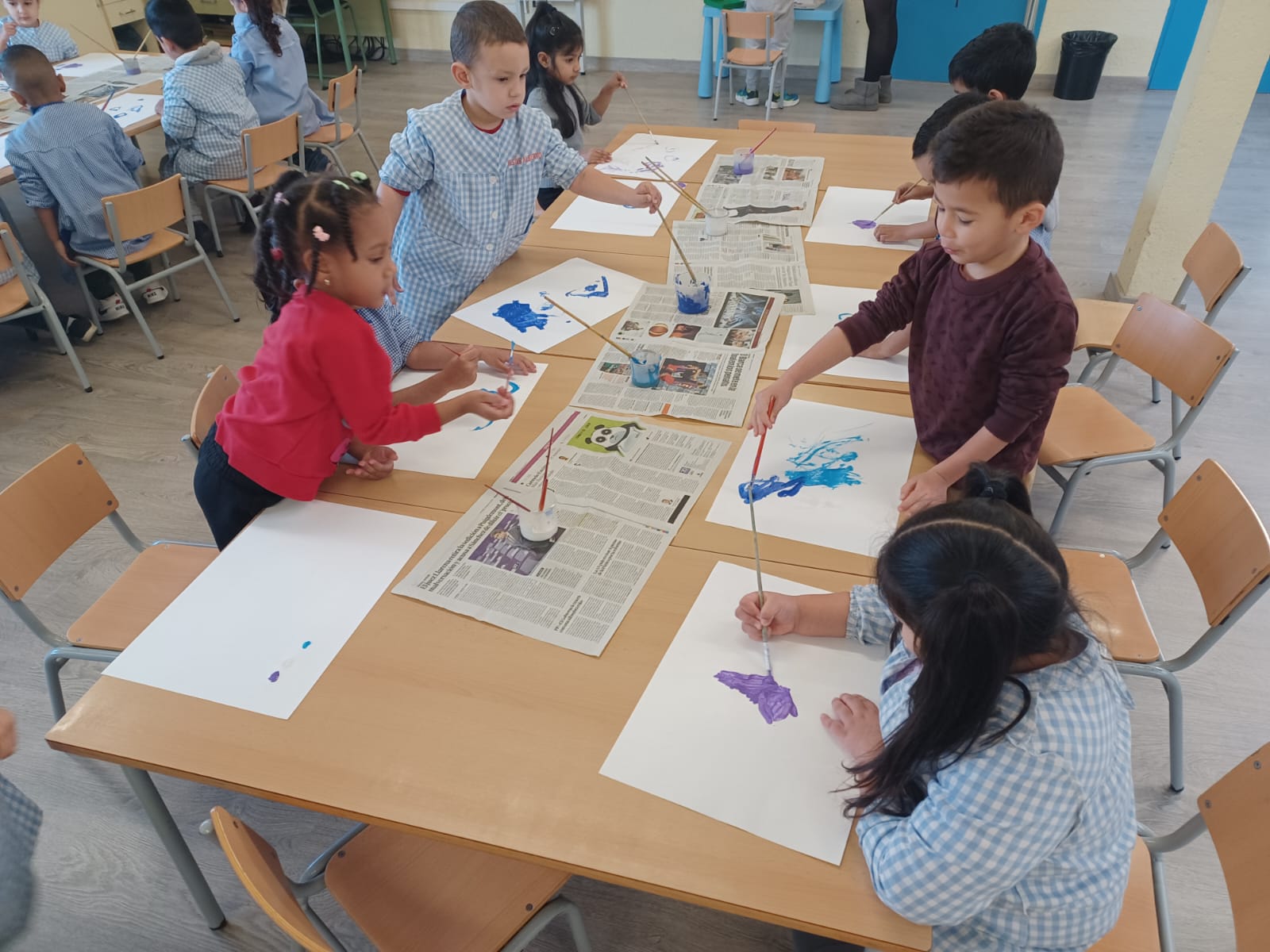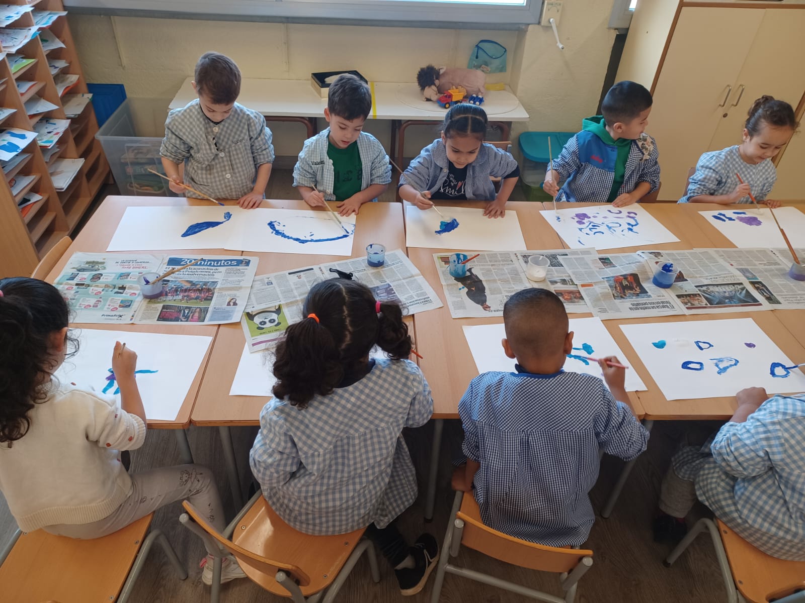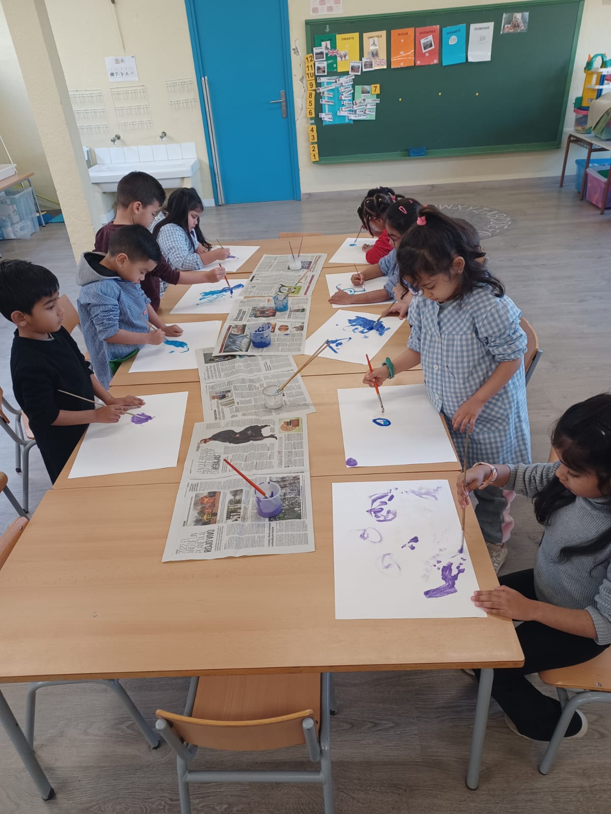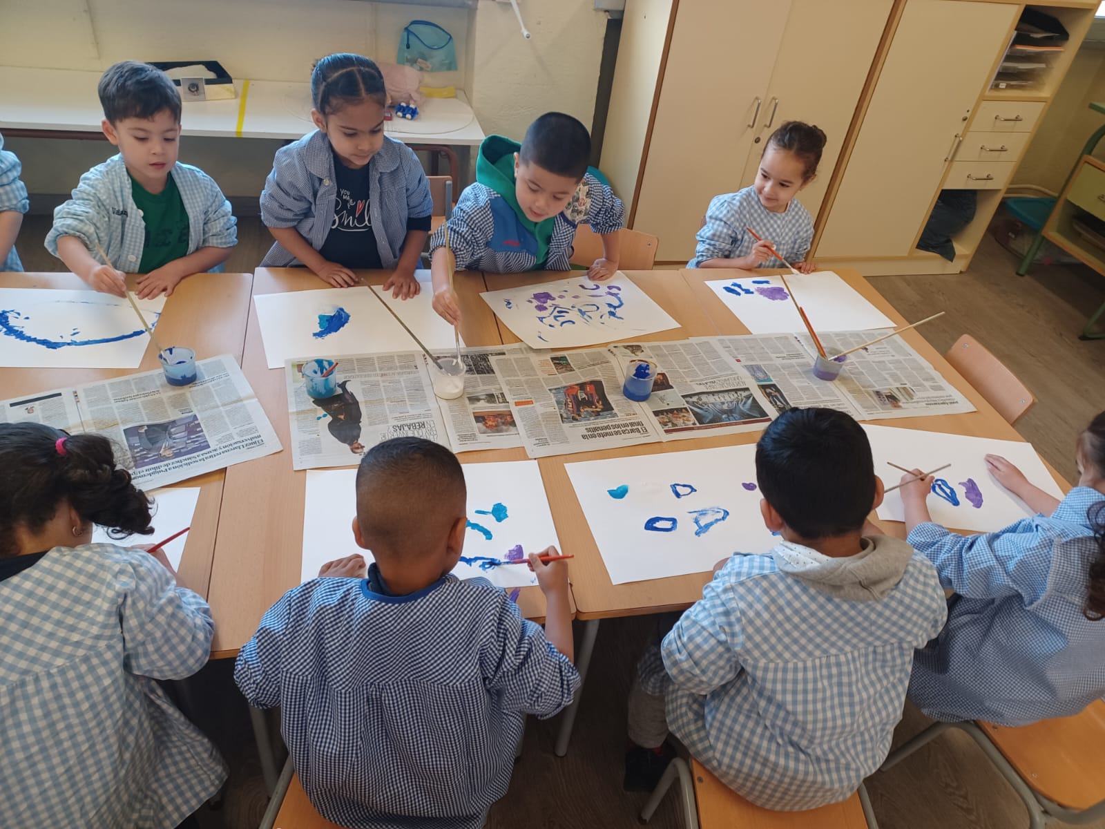 Els infants d’I4 hem gaudit de la pintura dels colors de l’hivern: blau clar, blau fosc, lila i blanc tot dibuixant lliurement mentre escoltaven la cançó de l’hivern de les 4 estacions de d’Antonio Vivaldi.