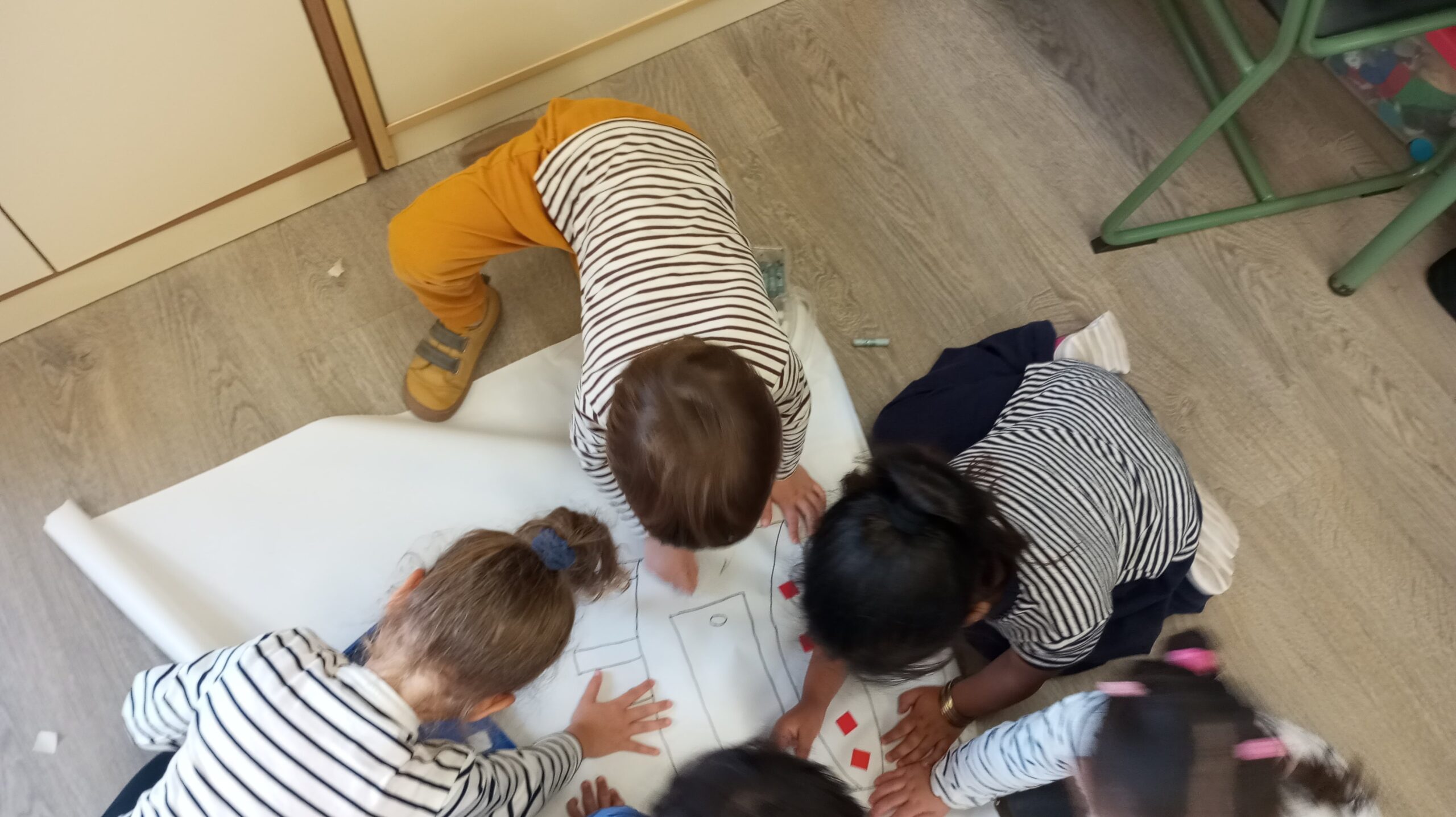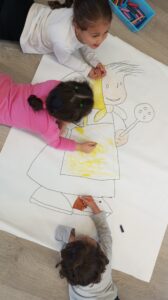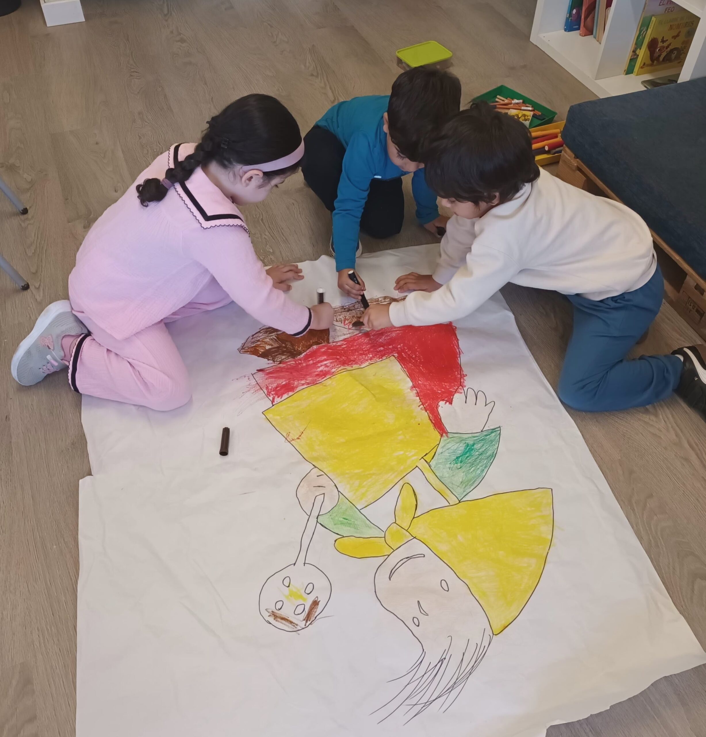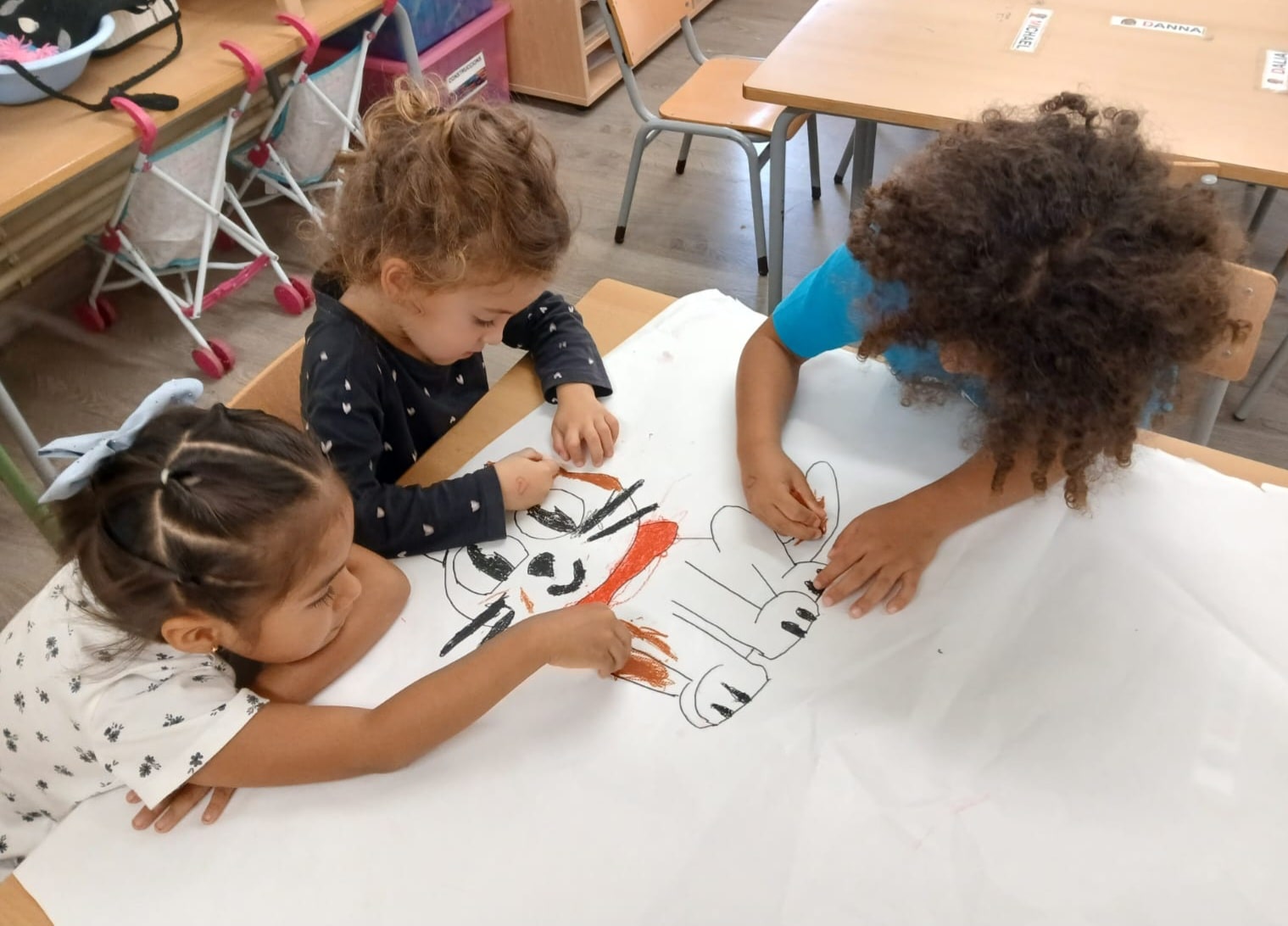També hem preparat un mural de la Castanyera; hem pintat amb diferents tècniques i materials la Castanyera, el fornet on fa les castanyes i també el gat Marrameu.