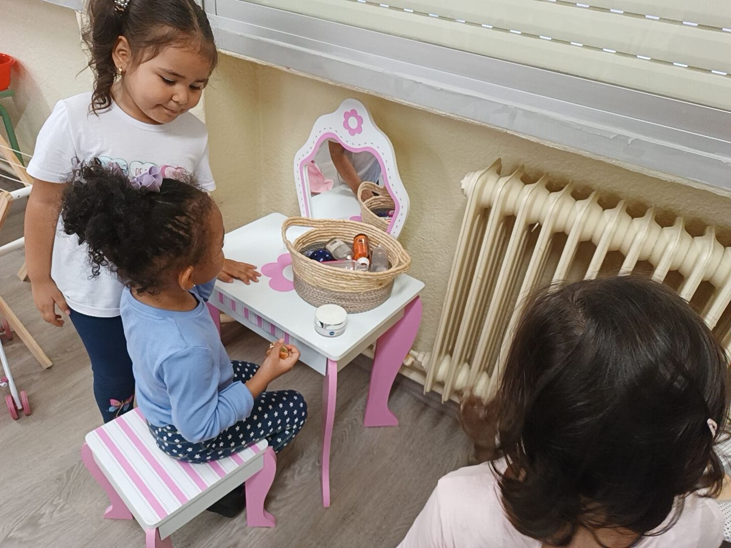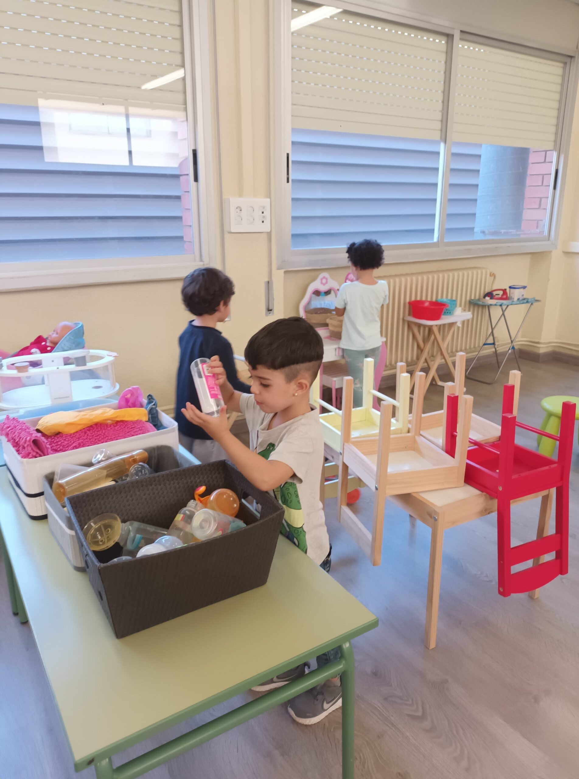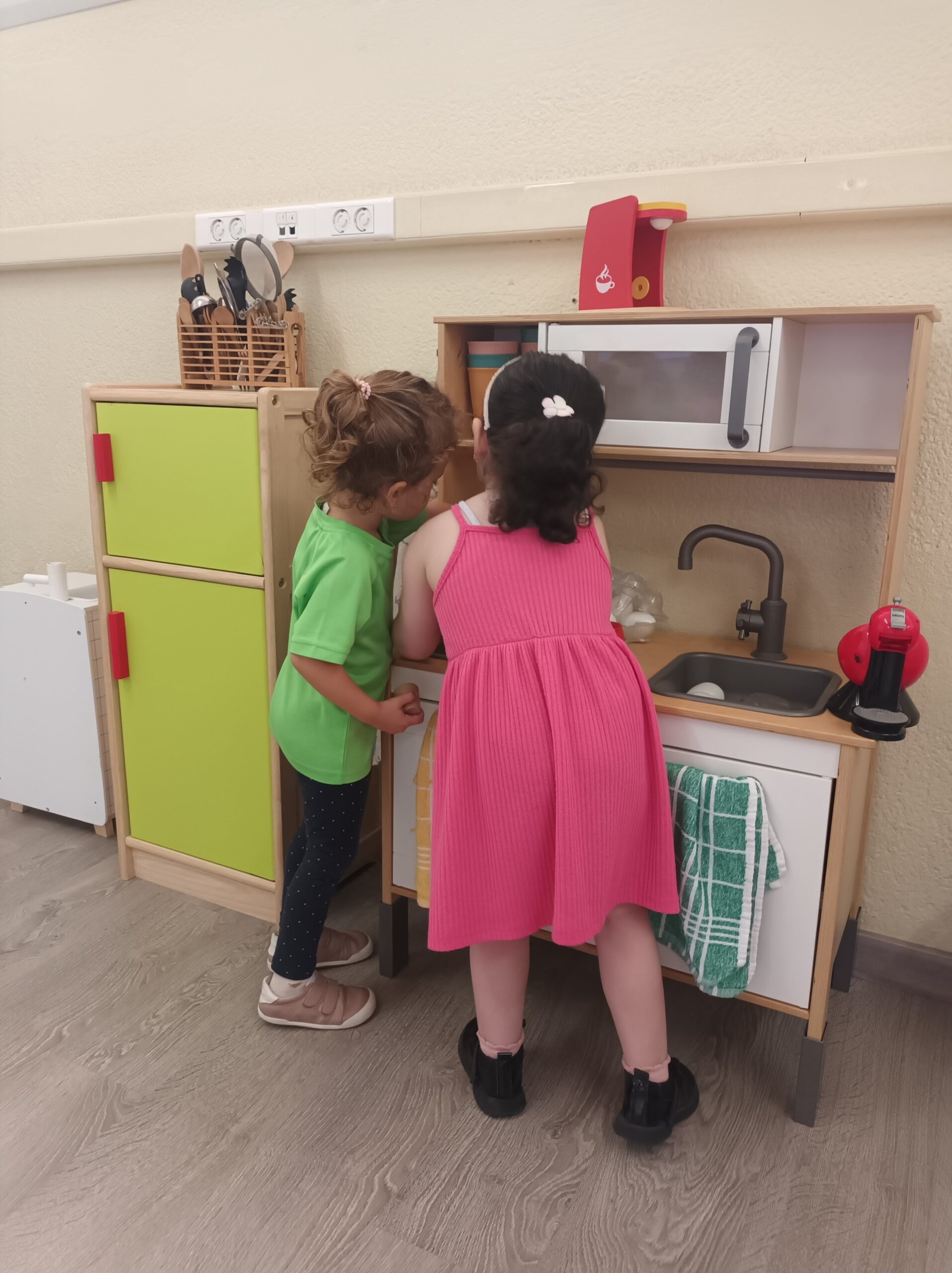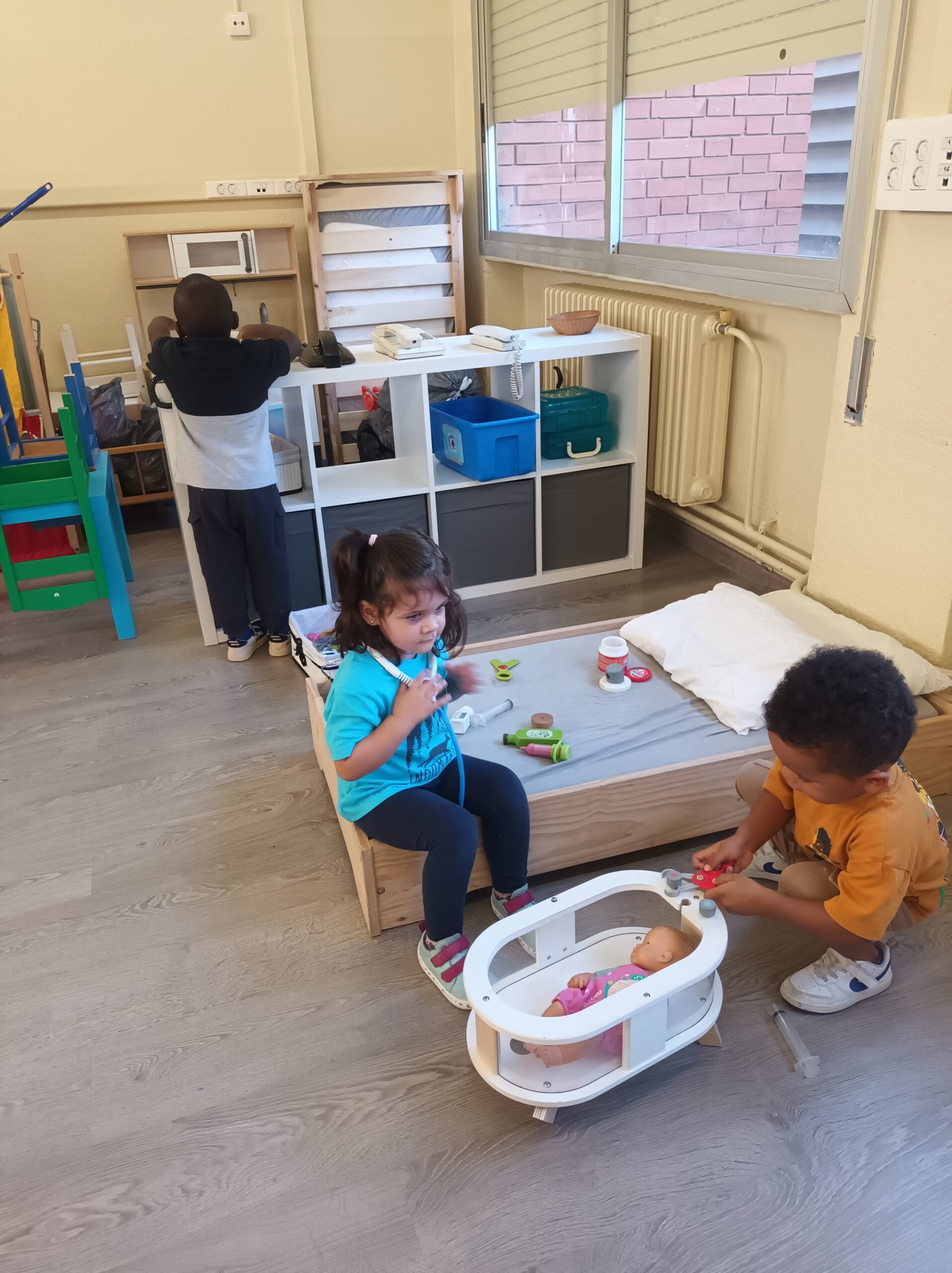 Així, una activitat molt motivadora per elles i ells és el joc simbòlic. Per això, hem visitat i jugat a l’aula destinada a aquest tipus de joc, on posem en pràctica diferents tipus de rols que es donen a la vida quotidiana.