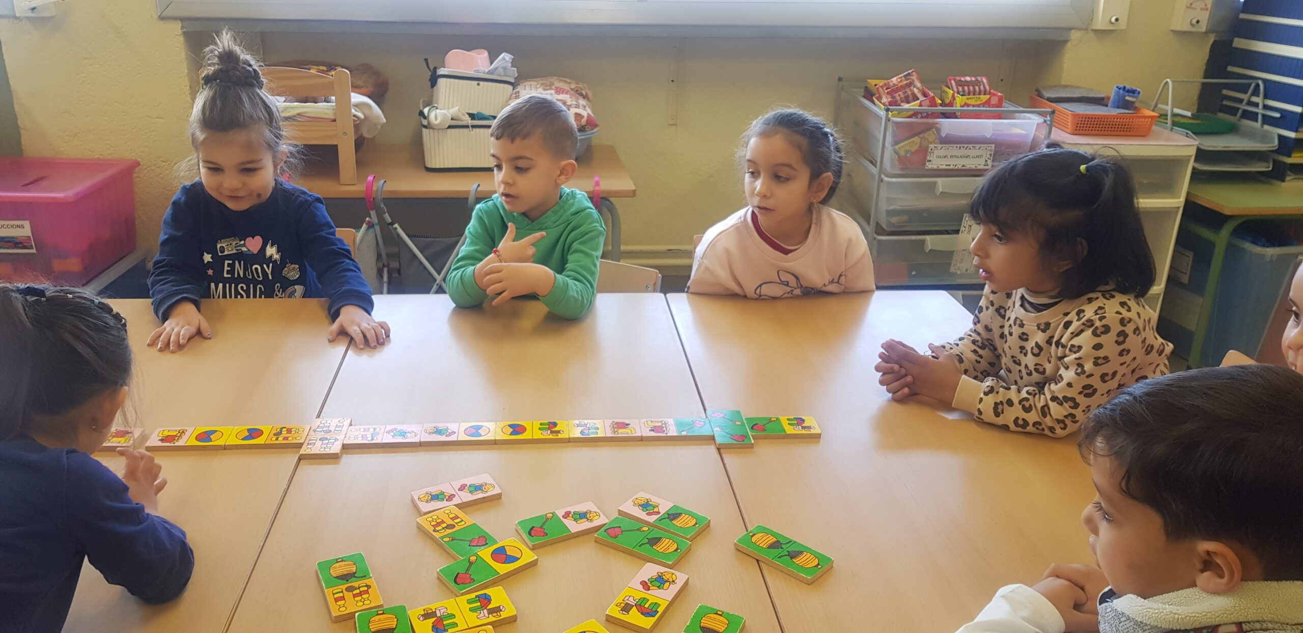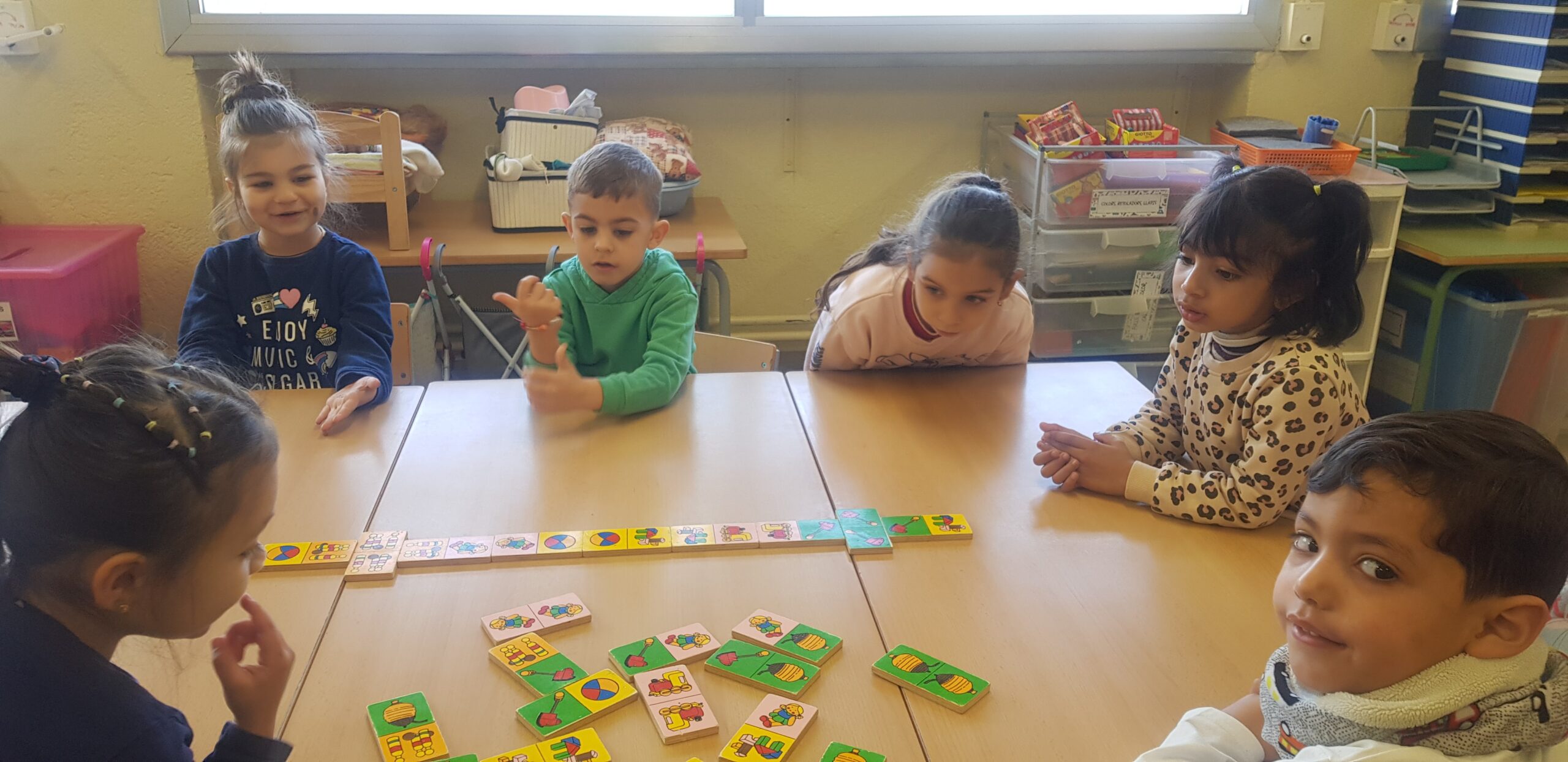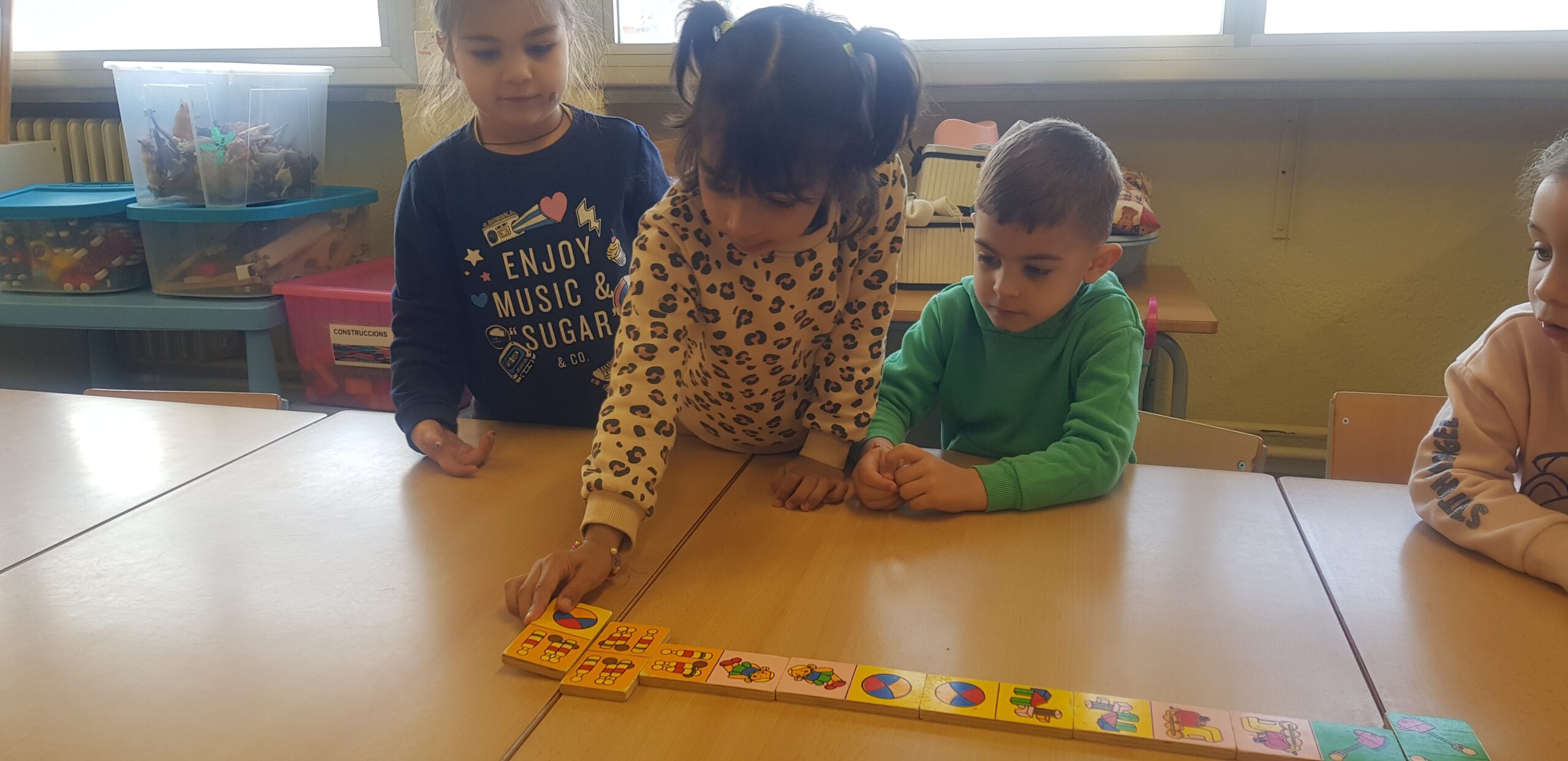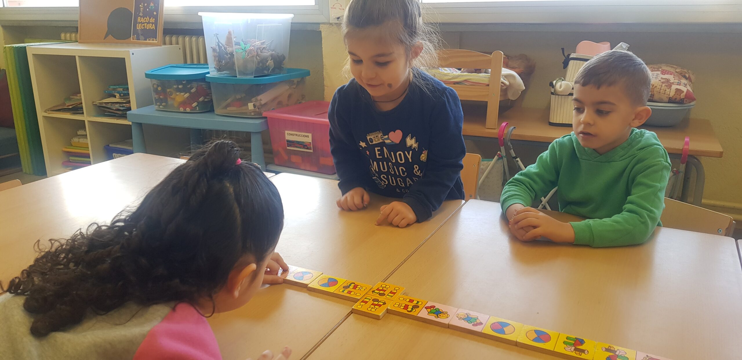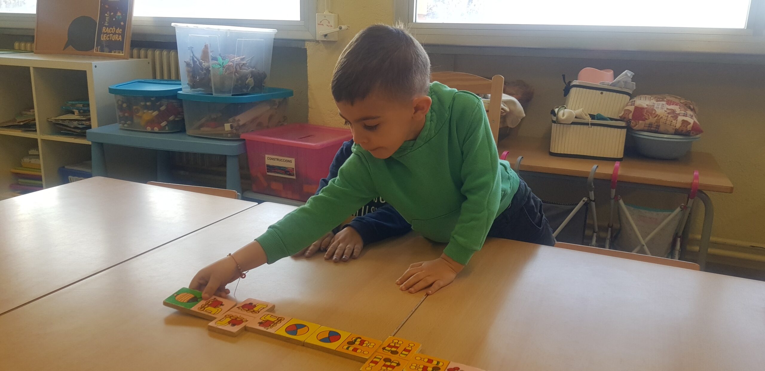 Portem unes quantes sessions en les que, en petit grup, anem jugant a diferents jocs de taula com el Memori, Lince, Dómino…