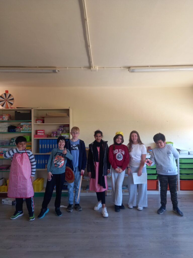 Els i les alumnes de P6 han preparat amb l’ajuda de les seves mestres la representació de teatre “La llegenda de Sant Jordi”.