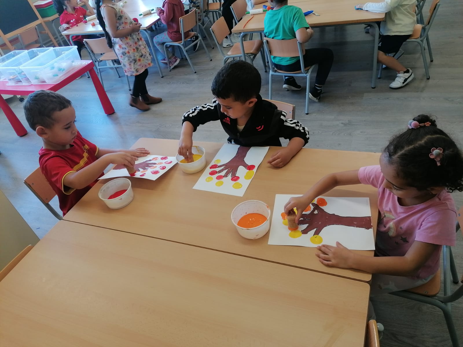 Durant els darrers dies a I4 hem començat a treballar la tardor a les aules. Hem pogut observar imatges de paisatges i de fruites i fruits d’aquesta nova estació. També hem decorat el nostre vestíbul amb un original arbre amb fulles dels colors de la tardor.