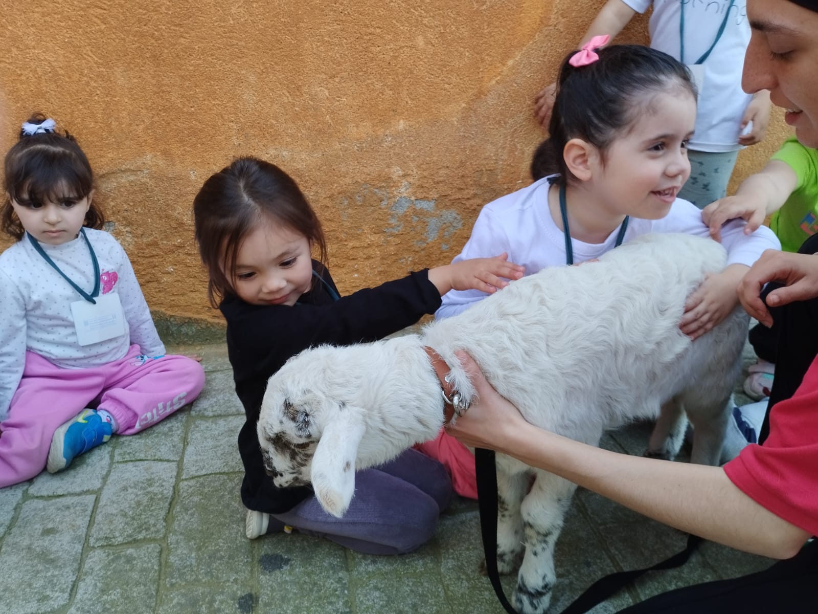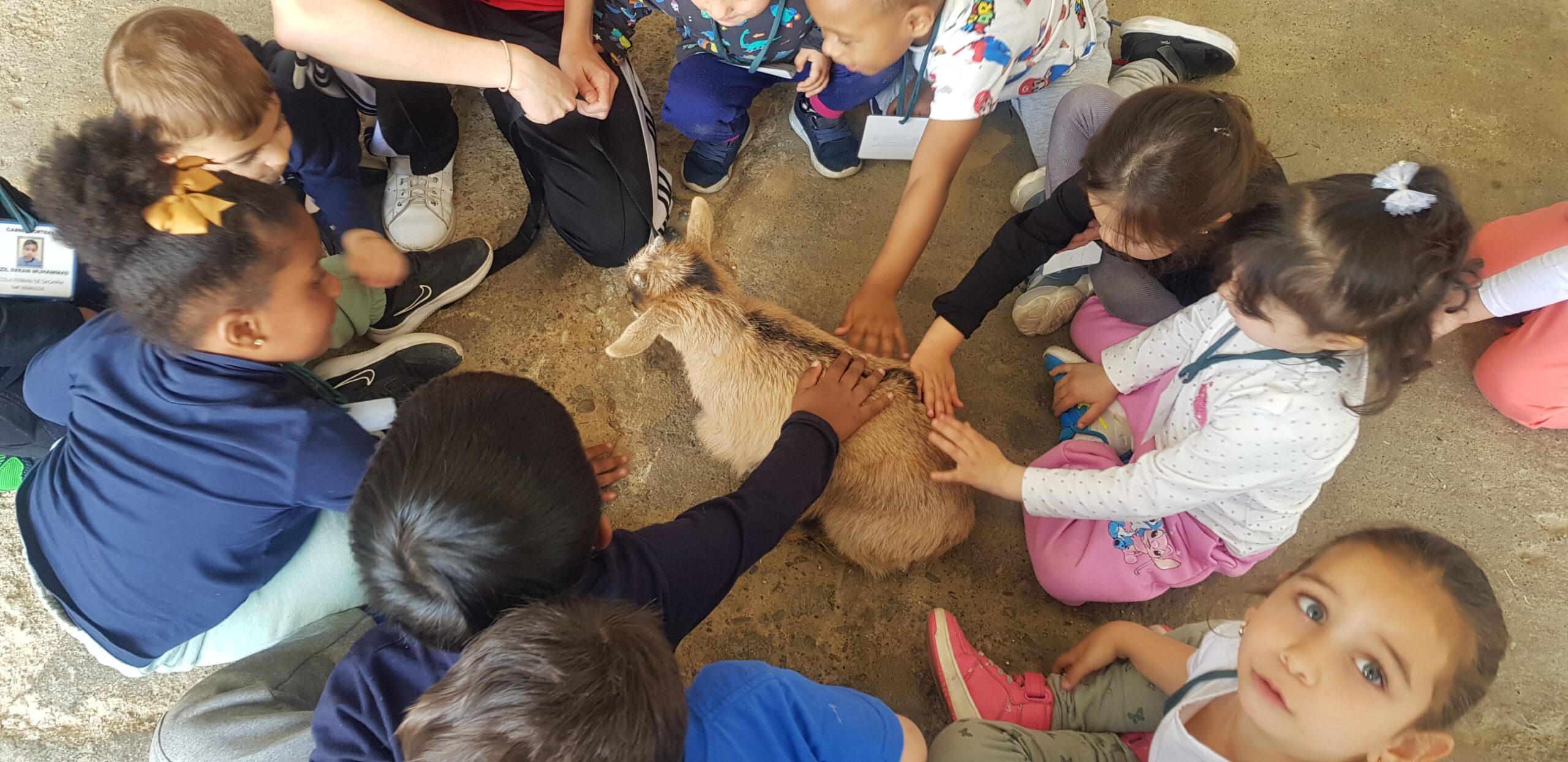 Ens van deixar agafar un pollet, una cabreta, una ovelleta i un conill. Eren molt suaus. A més, vam munyir una “vaca”: com sortia la llet…!