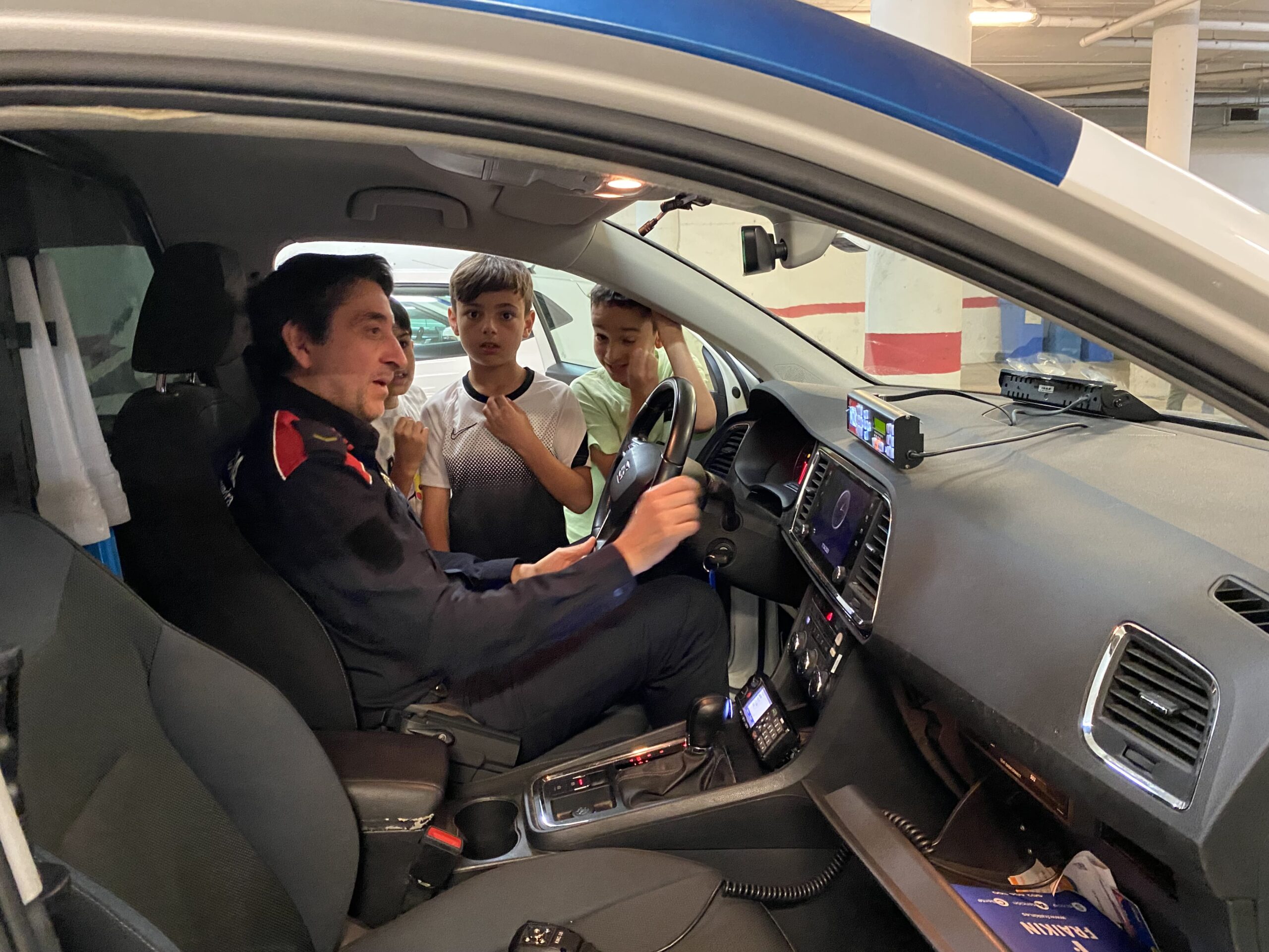 Dos agents ens van atendre molt be. Les explicacions sobre  tipus d’uniformes, què cal fer per ser Mosso, els diferents càrrecs dins del cos, com són els vehicles, com treballen …ens ha encantat.