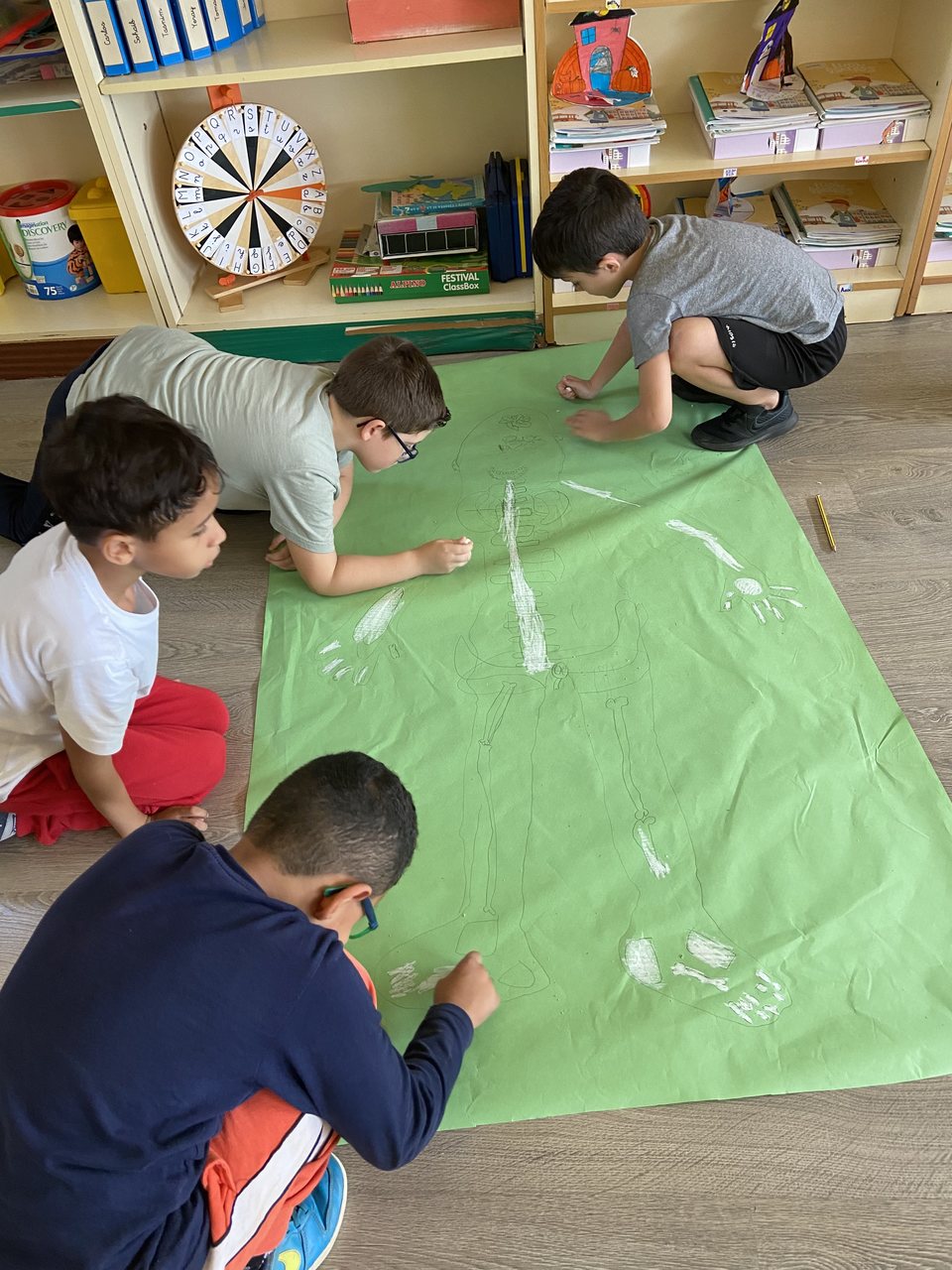 Els nens i les nenes de 2n aquest primer trimestre estem descobrint moltes coses del cos humà. Hem anat al laboratori i hem conegut al Huesitos! A partir d’aquí hem dibuixat la silueta d’un company i ara volem saber quants ossos tenim, com són, com es diuen….Vinga!