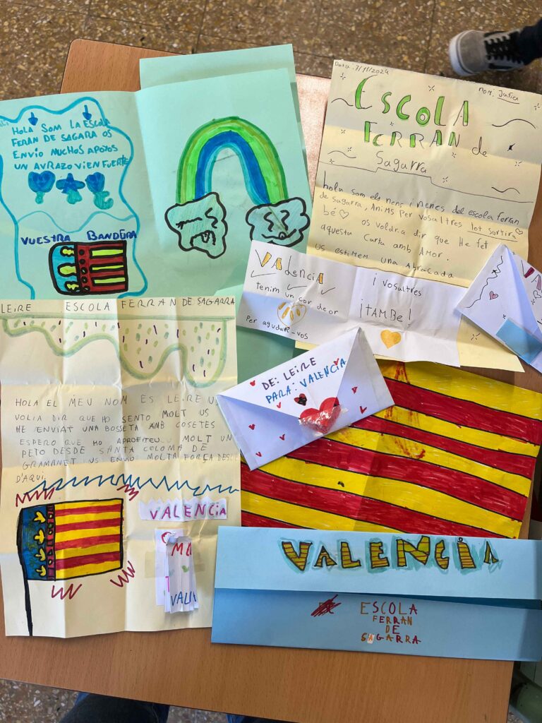 Els nens i les nenes de P4 ens hem solidaritzat amb la situació que hi ha actualment a València com a conseqüència de la DANA. Hem volgut participar enviant missatges d’ànims, de força i dibuixos amb molt carinyo per a tots els infants que estan passant una situació complicada.