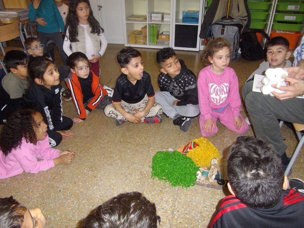 Es va explicar la història del ratolí i la muntanya amb acompanyament musical i petits objectes que són part d’aquesta narració.