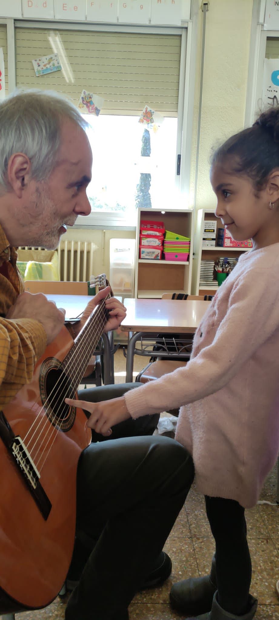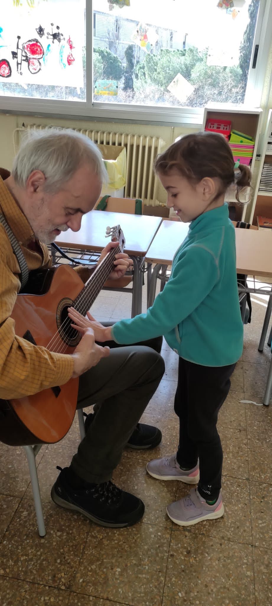 Es convida als infants a col·laborar i generar acompanyament musical a partir de petits instruments de percussió que van compartir entre ells.