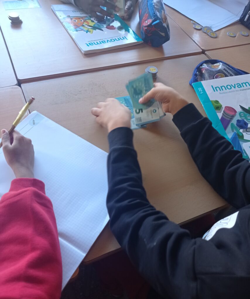 Ho fem amb monedes de 2 euros i amb bitllets de 5.